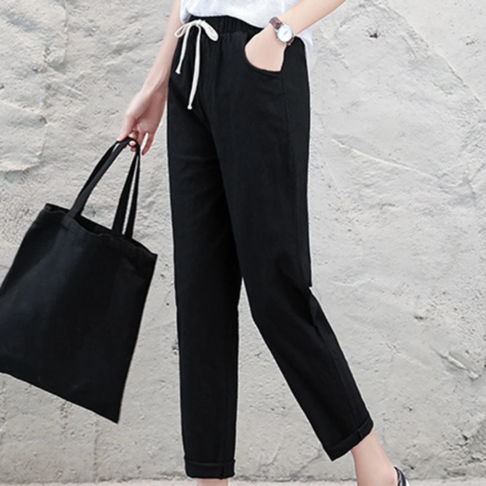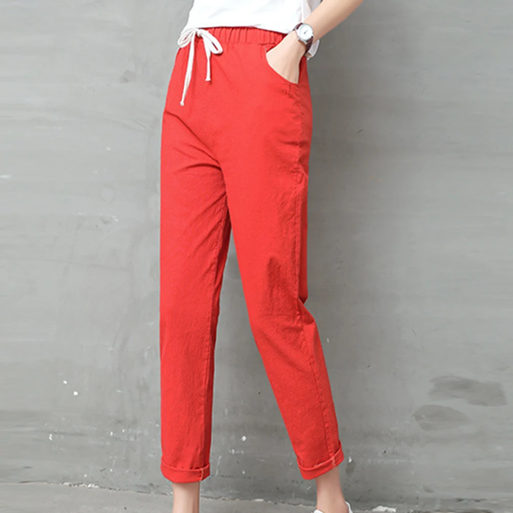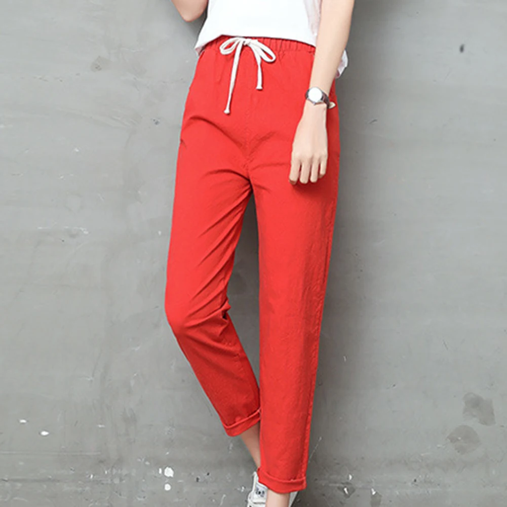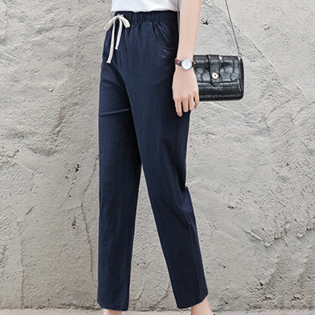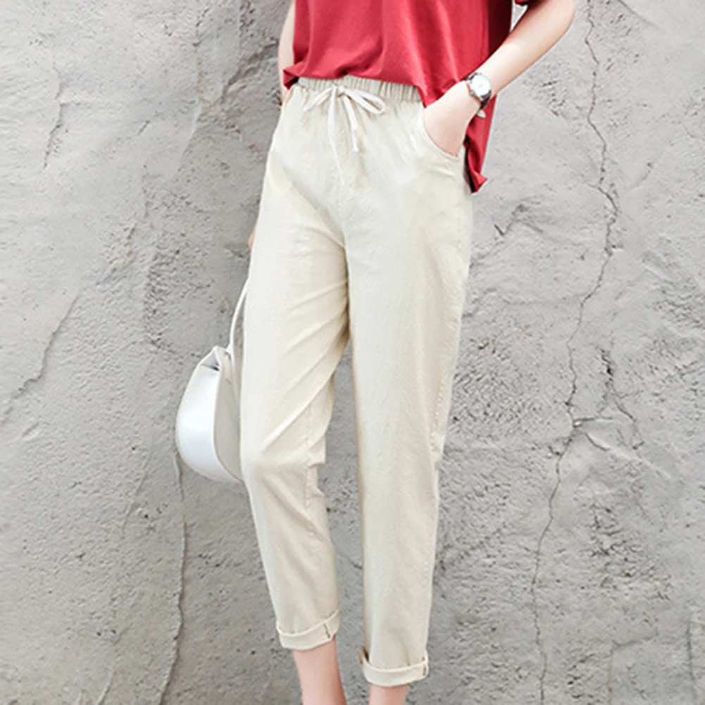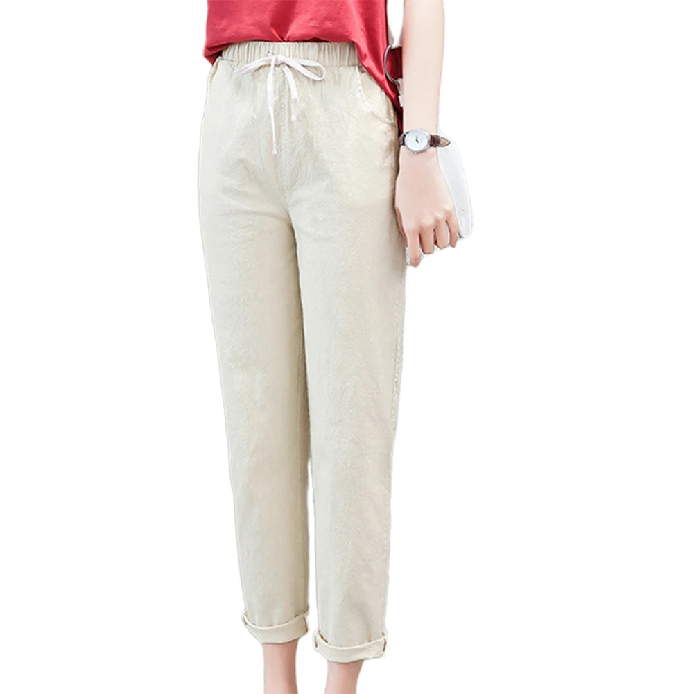Женские повседневные однотонные хлопковые брюки-карандаш с эластичной резинкой на талии