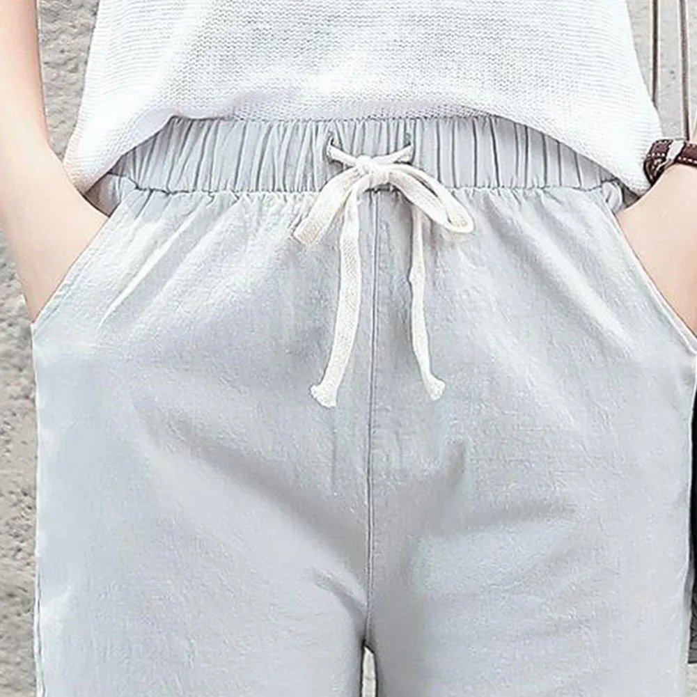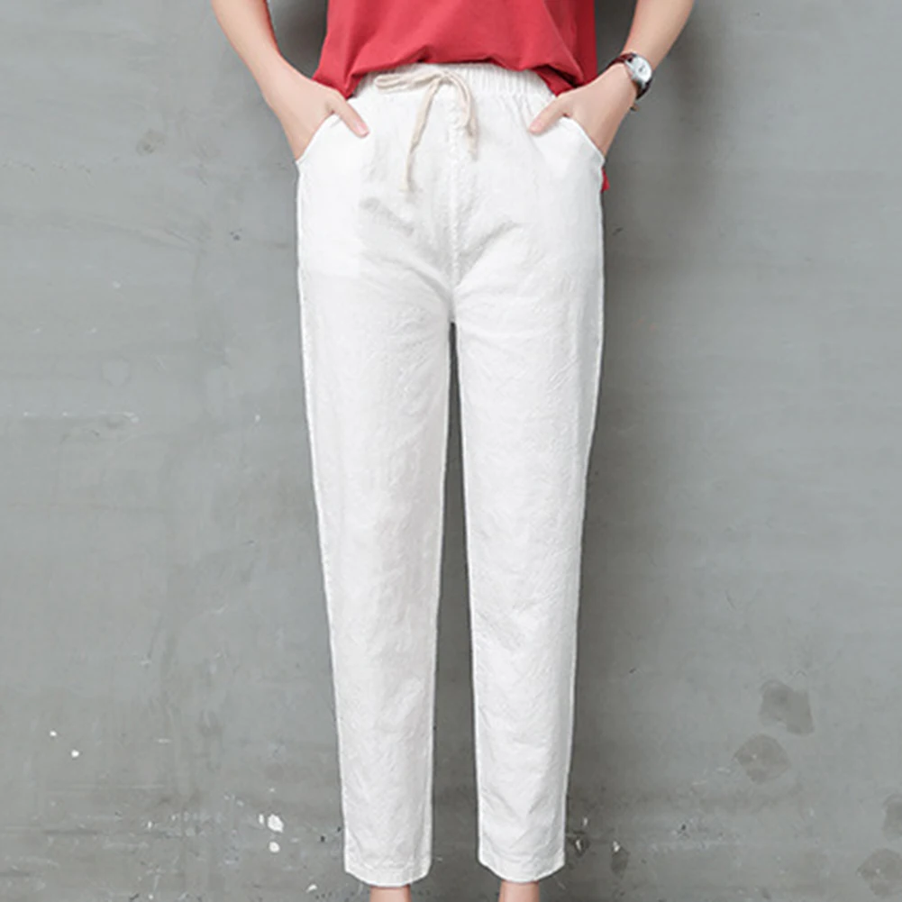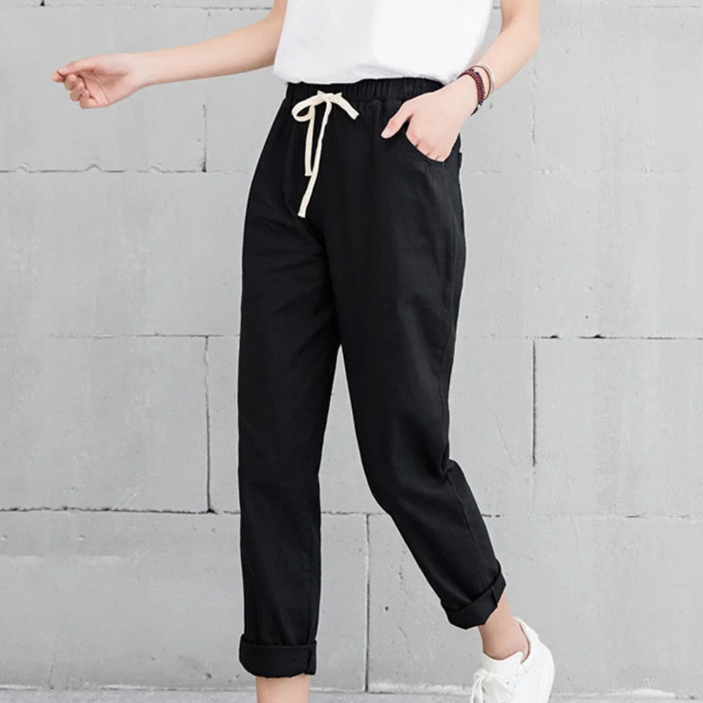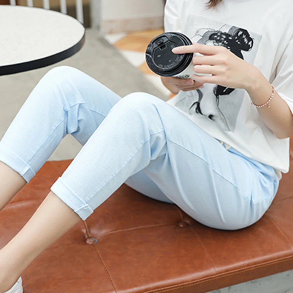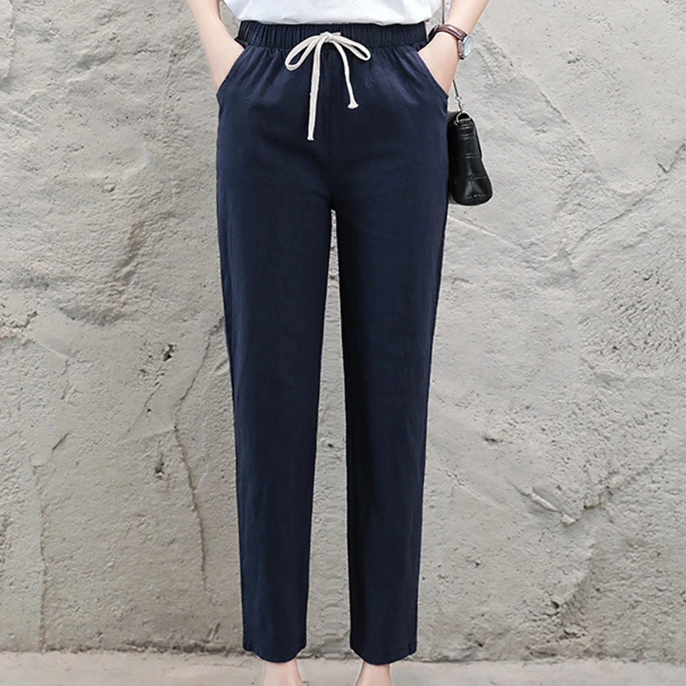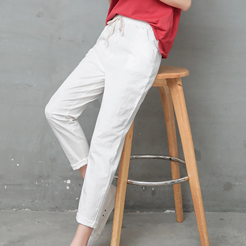 Женские повседневные однотонные хлопковые брюки-карандаш с эластичной резинкой на талии