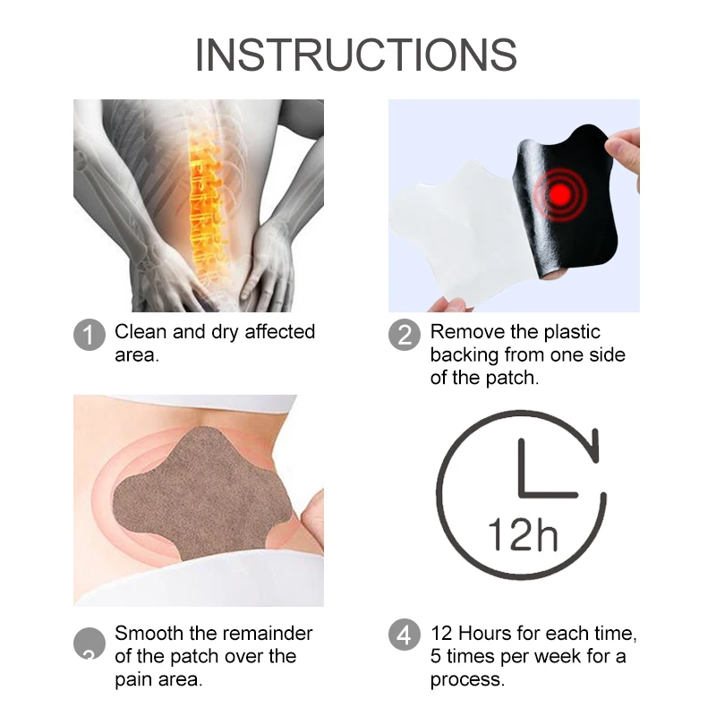 -4.когда вы удалите другую половину пластиковой подложки, Разгладьте оставшуюся часть пластырей над областью боли.