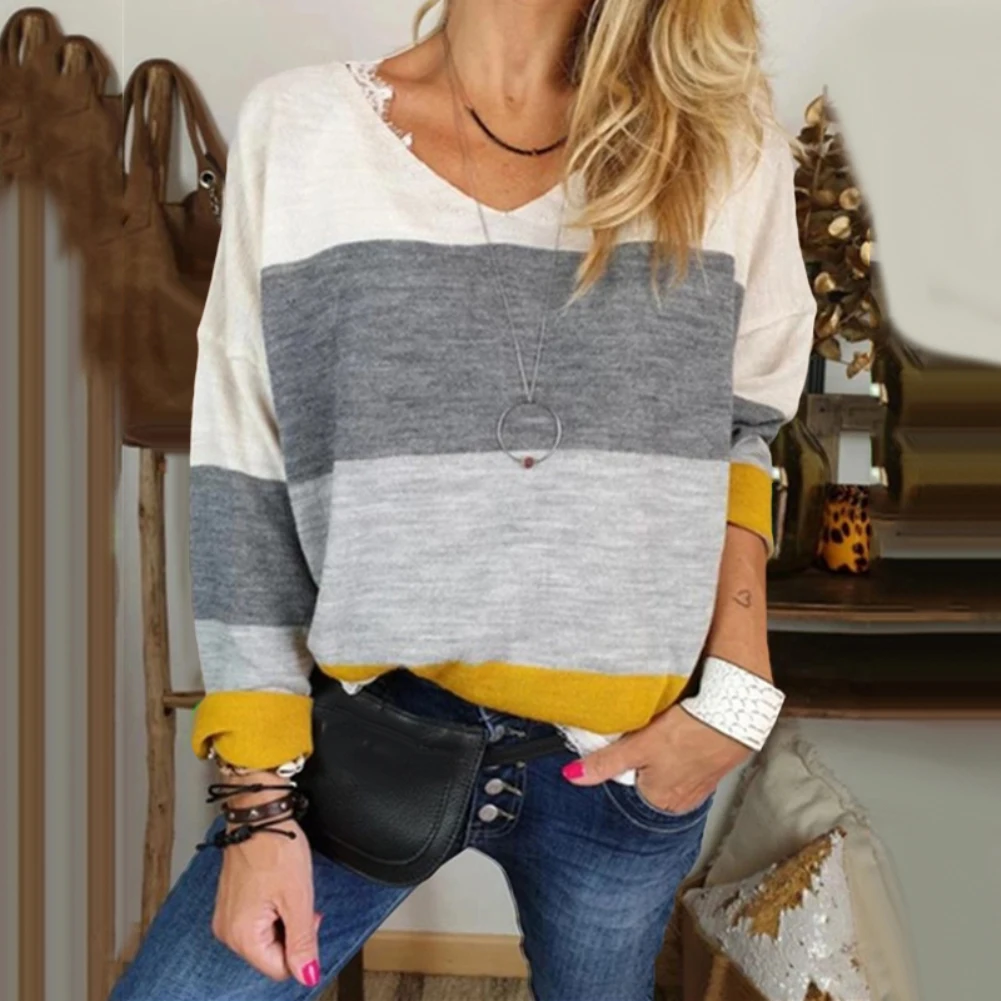 Повседневная Женская свободная футболка с v-образным вырезом и длинным рукавом в стиле пэчворк размера плюс