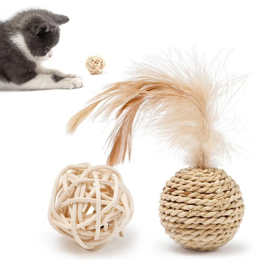 2 шт. перьевая соломенная ротанговая кольцевая колокольная звуковая игрушка для домашних собак кошек интерактивная игрушка