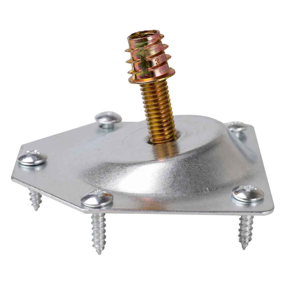 2. После того, как считанные данные пластина устанавливается, а затем просто винт ножки для мебели из нашего магазина, с 8 мм дюбель, напрямую через отверстие в центре пластины вручную.