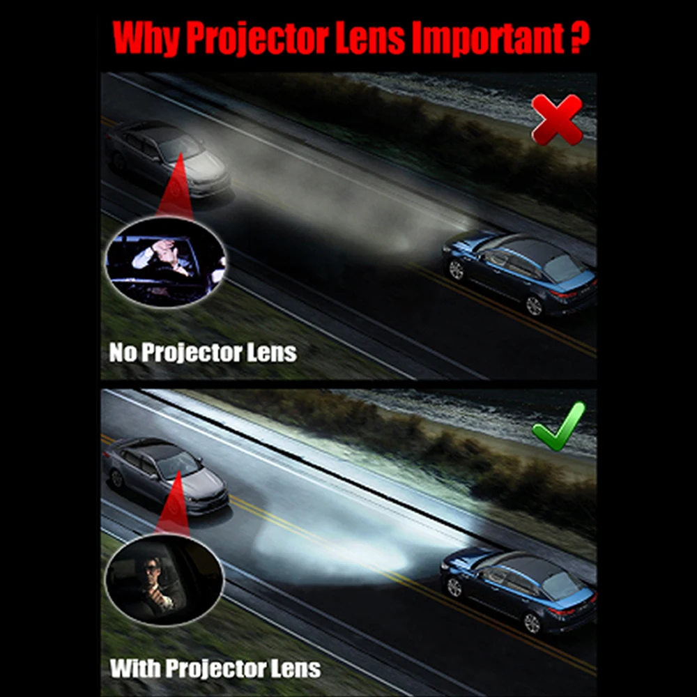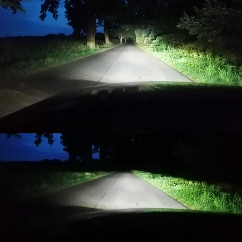 4. Оптические линзы обеспечивают идеальный светильник. Идеальная линия ближнего света, широкий обзор и равномерный светильник. Фокусировка дальнего света, высокая интенсивность светильник и дальнее расстояние облучения, значительно увеличивает ваше видение дороги вниз.
