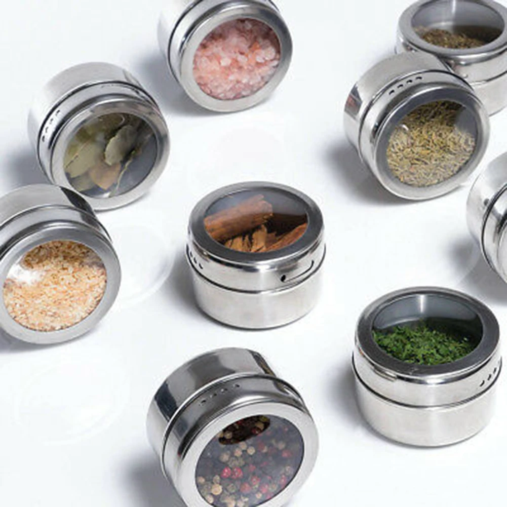 Магнитная банка для специй из нержавеющей стали Пылезащитная видимая коробка для приправ