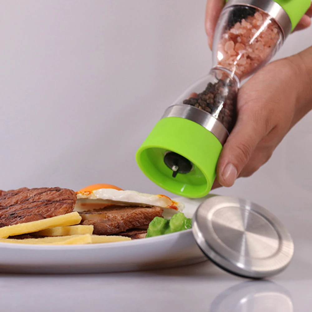 2 in 1 Dual Salt Pepper Mills Sesame Spice Grinder Shaker Kitchen Cooking Tool