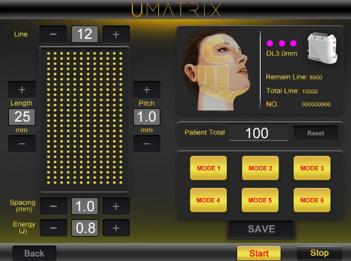 Источник энергии Высокая интенсивность сфокусированного ультразвука Энергетики 0,1-2,0 J (0,1 шаг) Патрон (советы) Стандарт: 3,0 мм, 4,5 мм, 8,0 мм