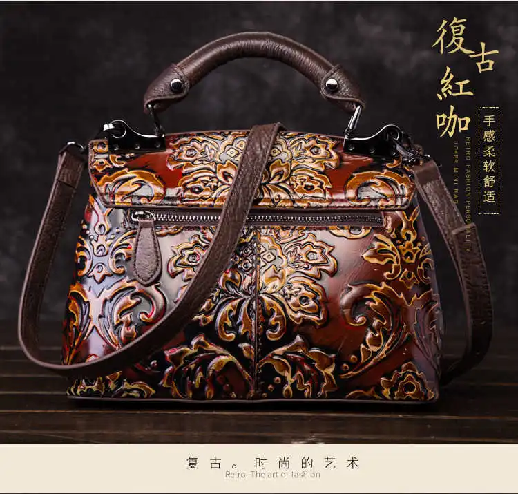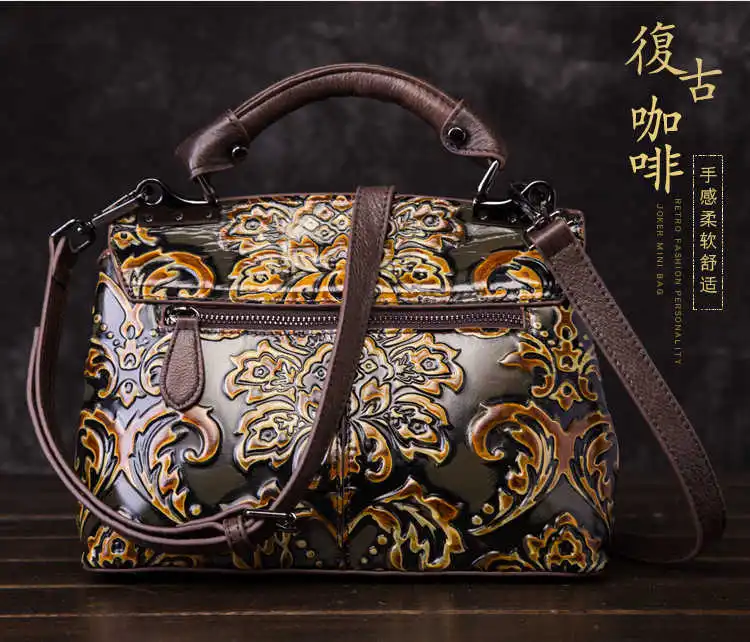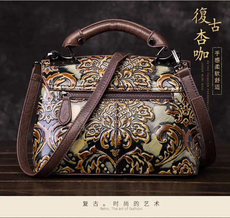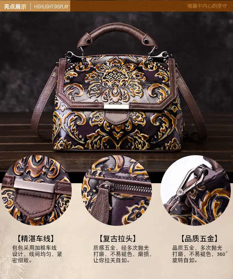 Китайский стиль, тисненая женская сумка, винтажная, натуральная кожа, женская сумка-мессенджер, на плечо, настоящая воловья кожа, сумка-тоут, Bolsa Feminina, Новинка