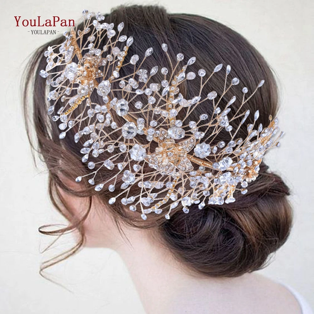 YouLaPan HP286 роскошная хрустальная Свадебная повязка на голову ручной работы, свадебный головной убор, потрясающие вечерние украшения для волос для невест