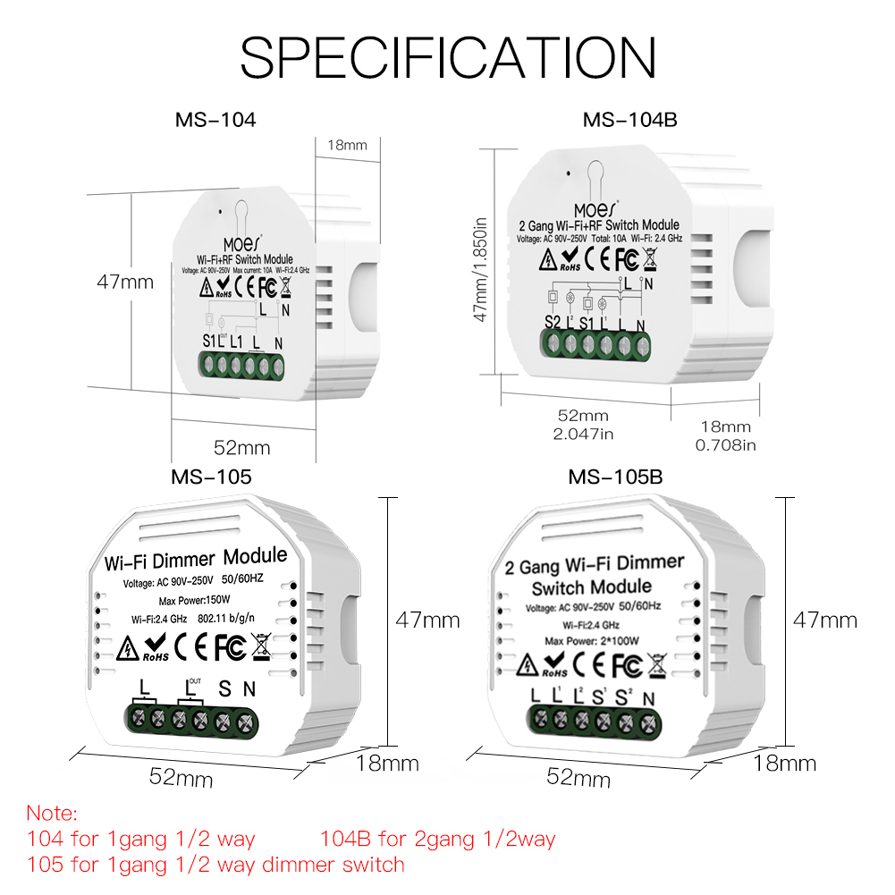 1. Легко заменить традиционный светильникИли диммерЧтобы сделать его умным, Может сделать ваше существующее1/2 позиционный переключатель smart, кроме того, просто установите 1 DIY умный коммутаторМодуль или модуль диммера,Подходит для ЕС/Великобритании, пожалуйста, подтвердите размер перед заказом.