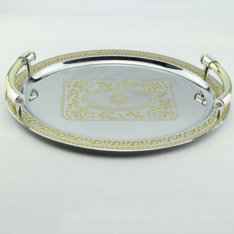 Фирменное наименование: jincuta Тип: лотки для хранения Стиль: европейский стиль Размер: 37*29,3 см Форма: овал Материал: металл Тип металла: нержавеющая сталь Цвет: Золотой Особенность: в наличии, Экологически безвредный Хранение: украшений/косметики/продуктов питания/чая/кофе Использование: дом/отель/кафе/KTV/ресторан Упаковка: 1 шт * лоток для хранения