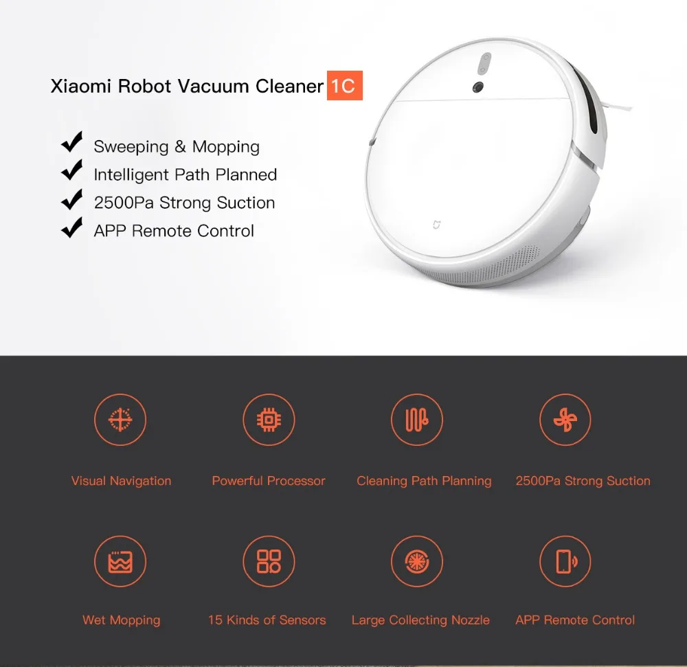 Xiaomi vacuum 1C может подметать и в то же время автоматически мыть пол.