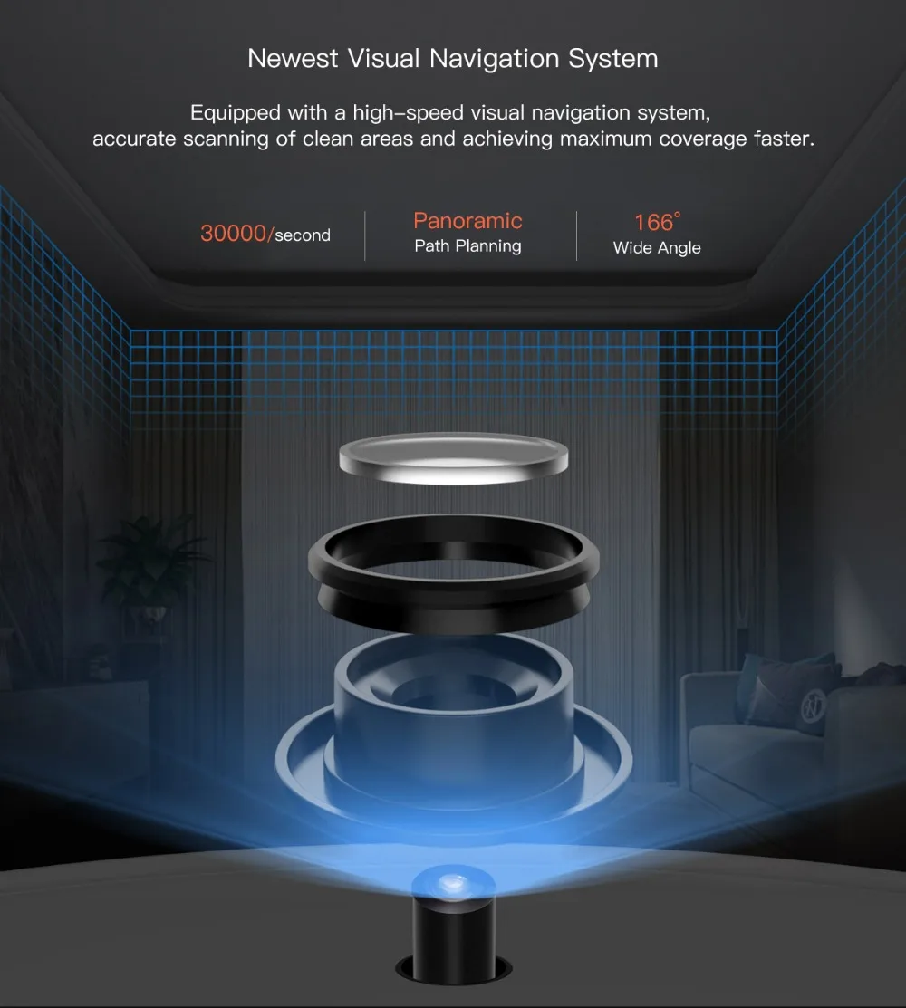 Оснащен высокоскоростной визуальной навигационной системой, точным сканированием чистых зон и быстрым максимальным охватом.