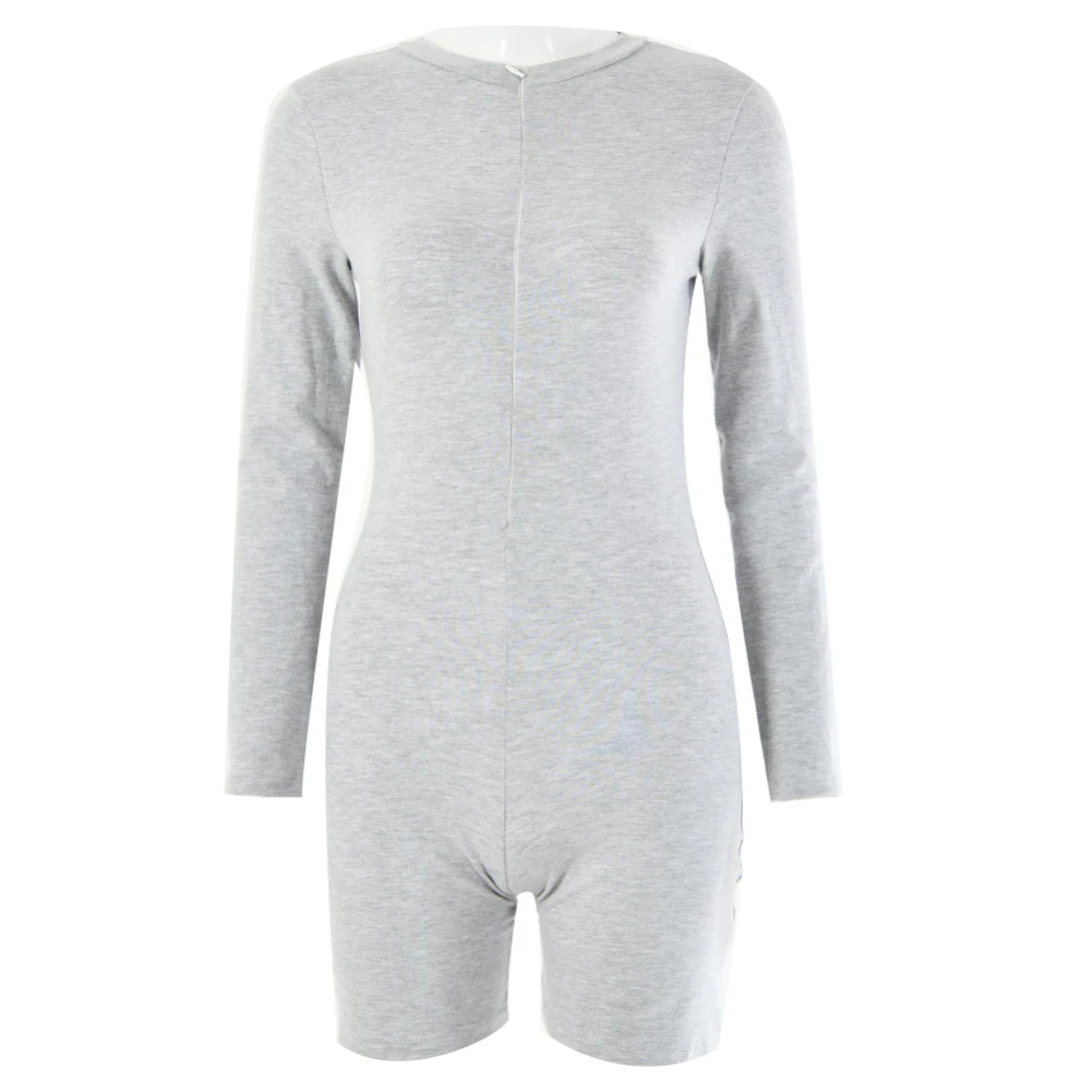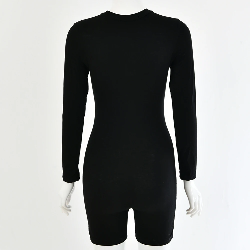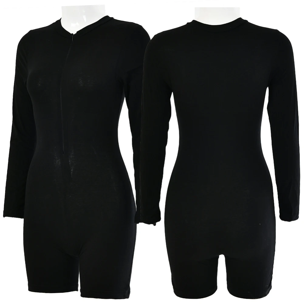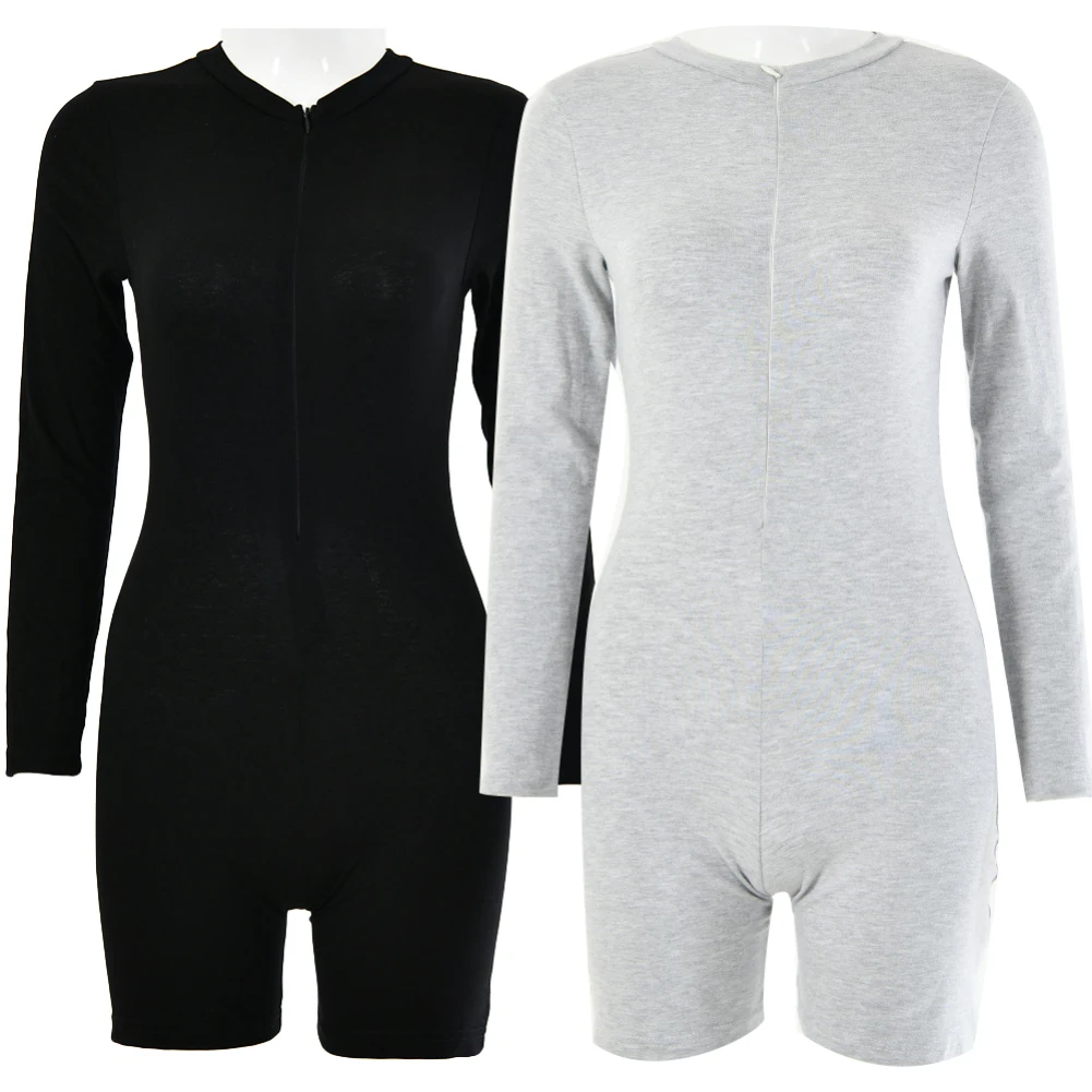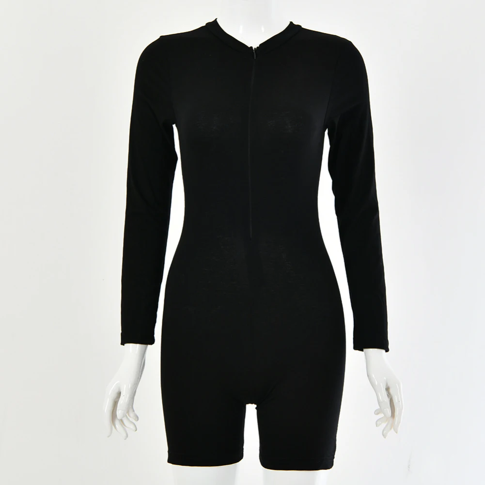 Женское облегающее боди с круглым вырезом и длинными рукавами на молнии, эластичный спортивный костюм