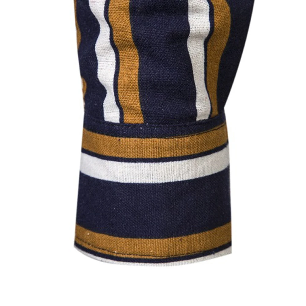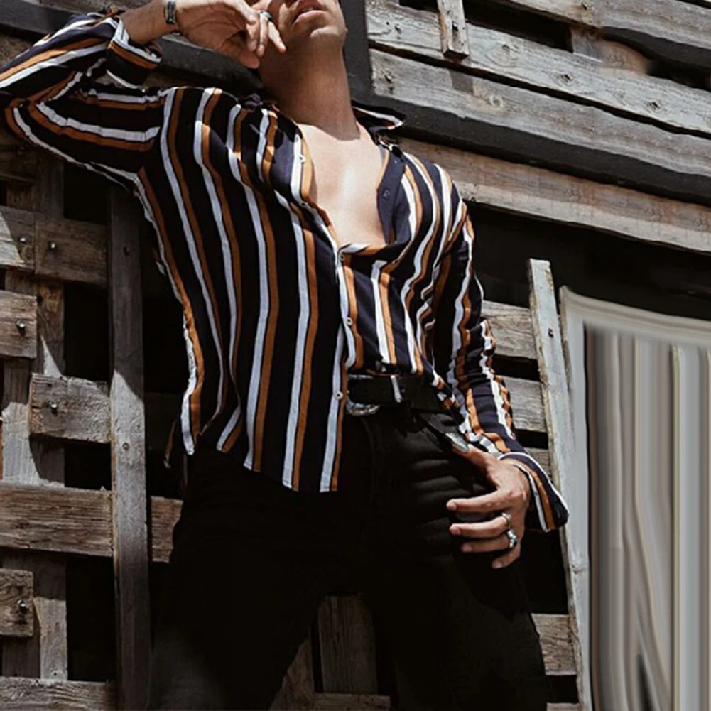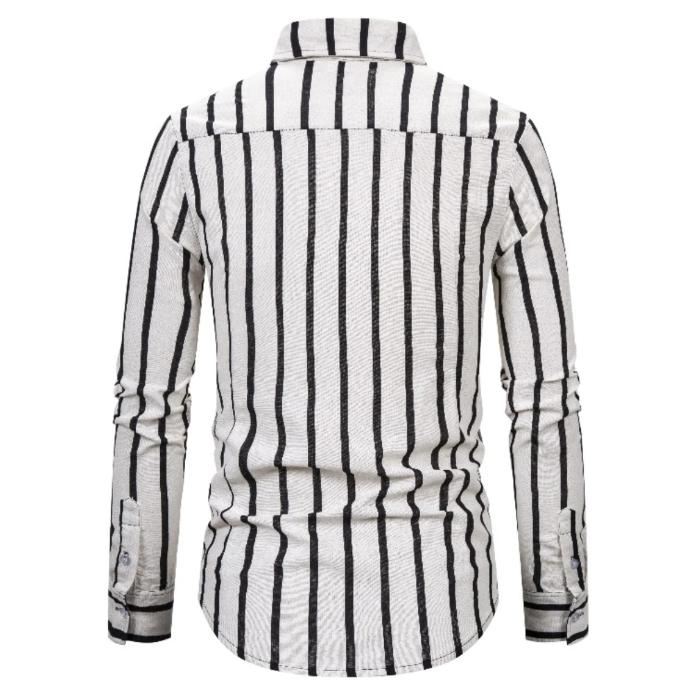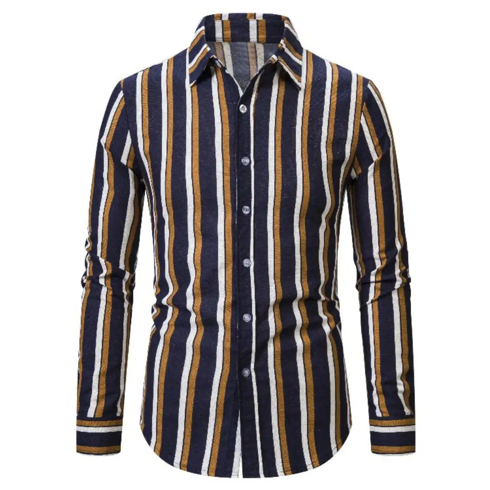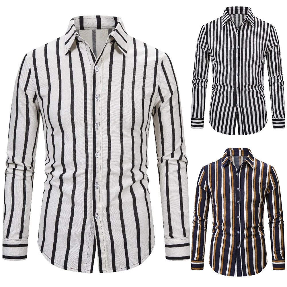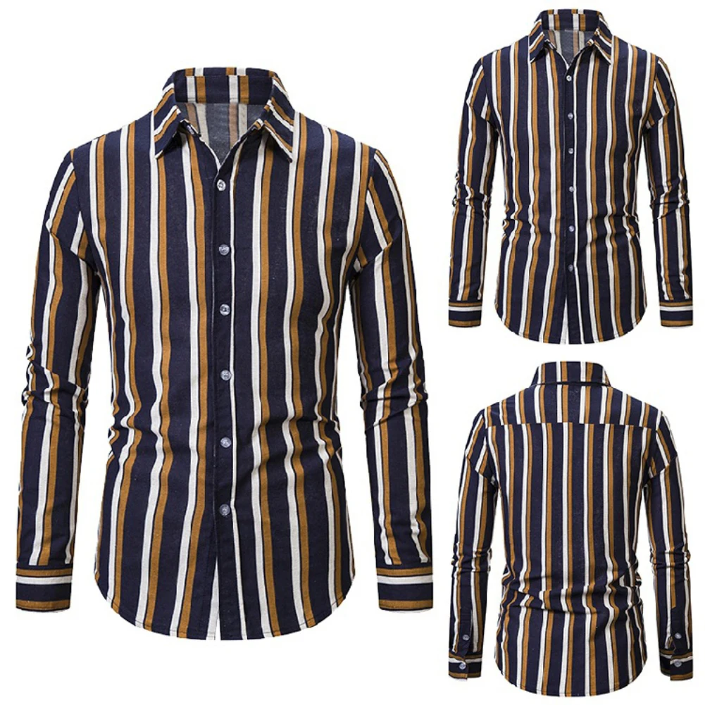 Мужская повседневная приталенная рубашка с длинными рукавами и отложным воротником в Вертикальную Полоску