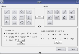 Расстояние между точками, расстояние между точками, расстояние между линиями, расстояние по центру, дуга, круг, угол, прямоугольник, измерение многоугольника, функция калибровки, автоматический поиск кромок
