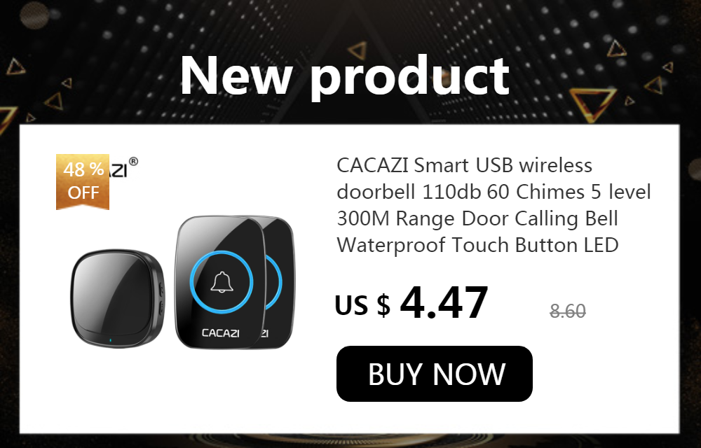 1. Нажмите кнопку, супер обучающий код может свободно научиться сочетать, может быть неограниченным подходящим приемником. 2. Вместо использования батареи, кнопка преобразует кинетическую энергию в электрическую и посылает сигнал при нажатии. 3. Передатчик может нормально работать в снежной или высокой температуре окружающей среды, водонепроницаемый и пыленепроницаемый. 4. Напряжение приемника составляет 220 В. 5. Приемник находится на расстоянии 120 метров (на открытой местности), что может быть связано с окружающей средой и препятствиями. 6. Приемник имеет 38 мелодий на выбор, и громкость составляет 20-80 дБ в 3 уровнях. 7. Приемники имеют адаптер США, ЕС, Великобритании и Австралии, подходит для большинства стран. 8. Просто подключите приемник к электрической розетке, передатчик кнопки может быть приклеен к двери с помощью клейких лент. 9. Размер кнопки: 77*45*25 мм 10. Размер приемника: 95*55*25 мм Примечание: Кнопка не может быть размещена на железной двери, потому что это будет мешать сигналу. Если приемник не звонит при нажатии кнопки после получения дверного звонка, Пожалуйста, подключите дверной звонок.