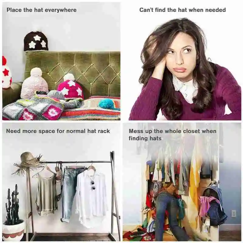 Органайзер для шляпы с 10 клипов, который может держать 10 шляп, он может мгновенно превратить вашу вешалку в органайзер для шляпы