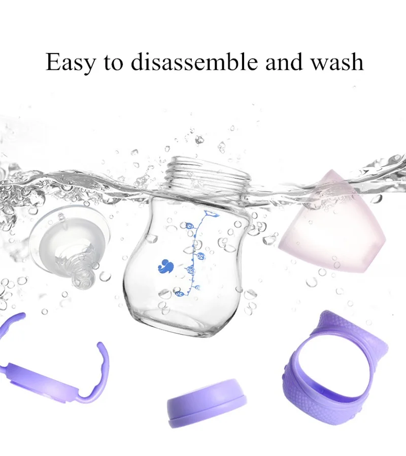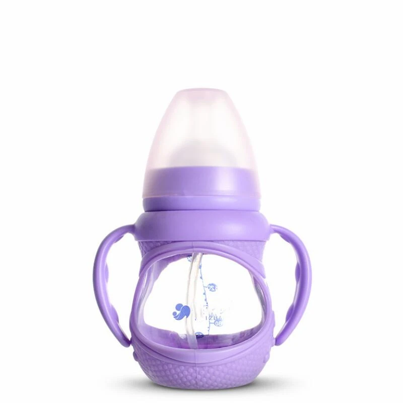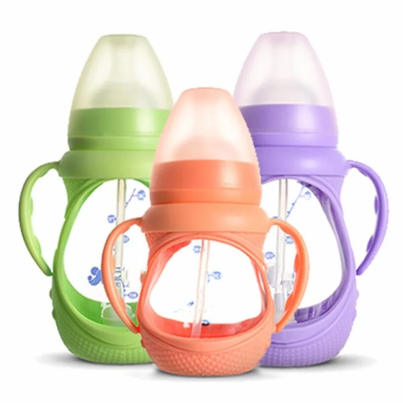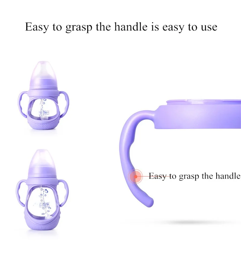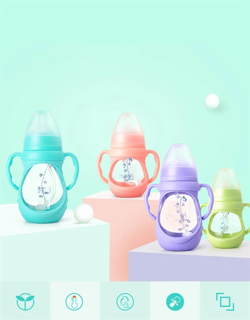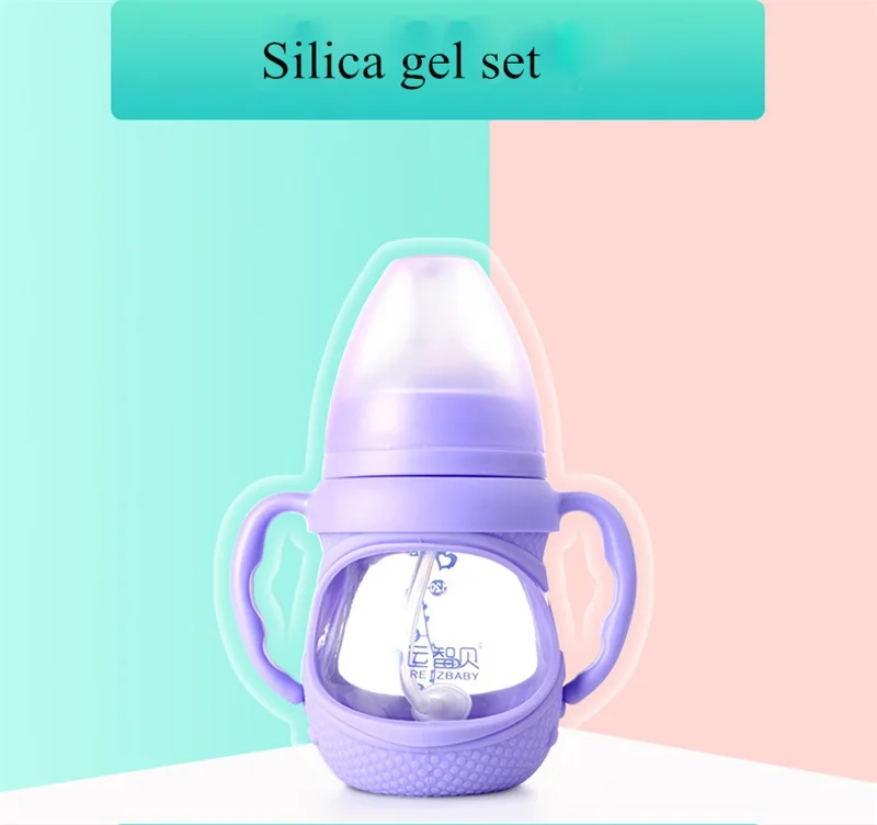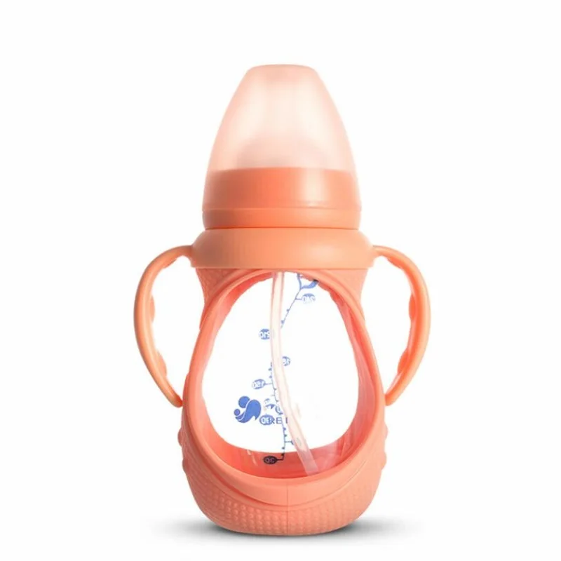 Стеклянная бутылочка для кормления младенцев безопасная силиконовая бутылка для молока с ручкой широкая бутылочка для кормления новорожденных