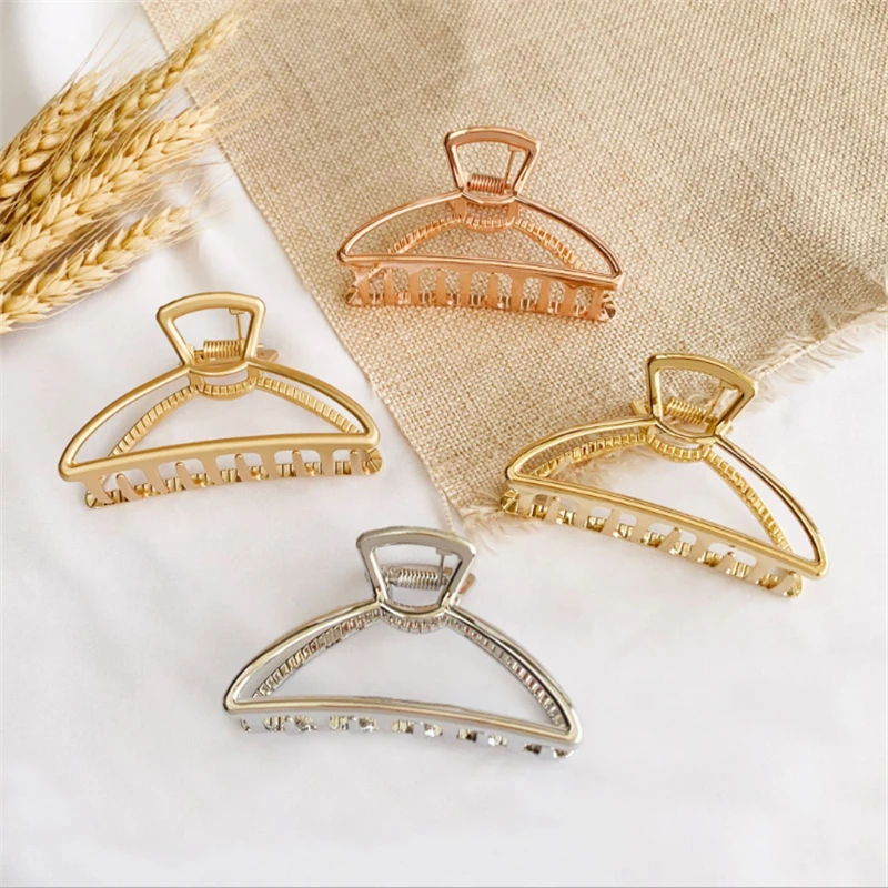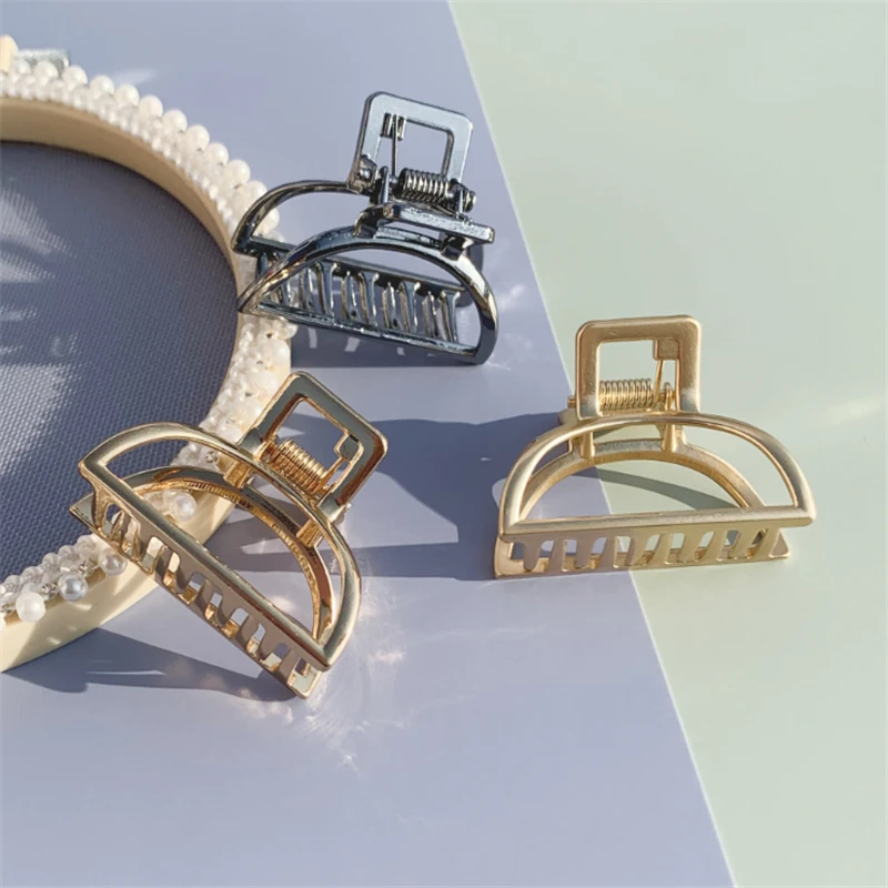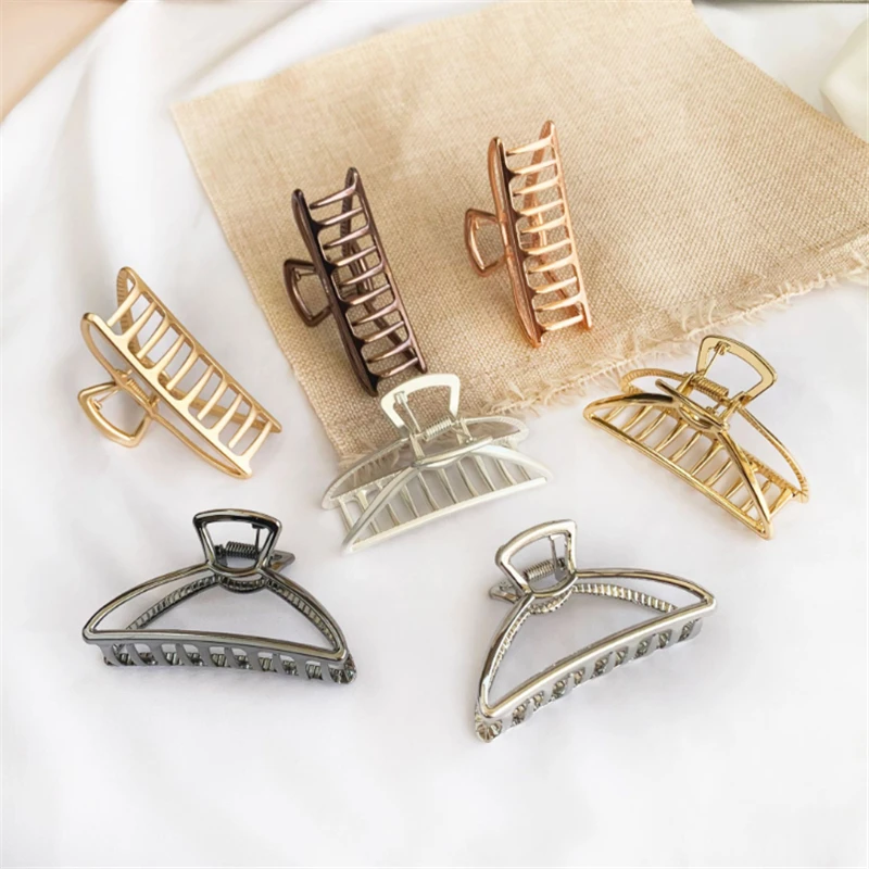 Модные женские Геометрические зажимы для волос, металлические заколки для волос, однотонные заколки для волос, аксессуары для волос большого размера