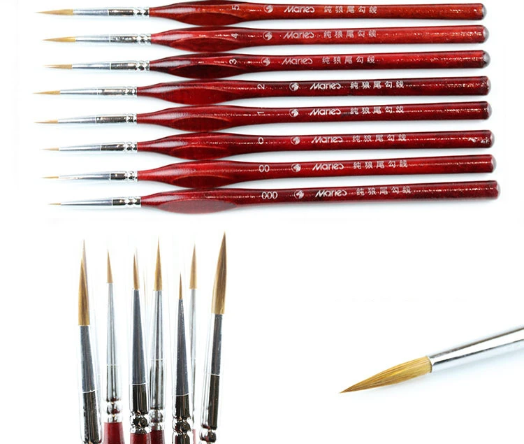 Профессиональная Кисть для рисования, 9 размеров, изящные острые наконечники, миниатюрные кисточки для рисования акриловыми акварельными маслами, 965
