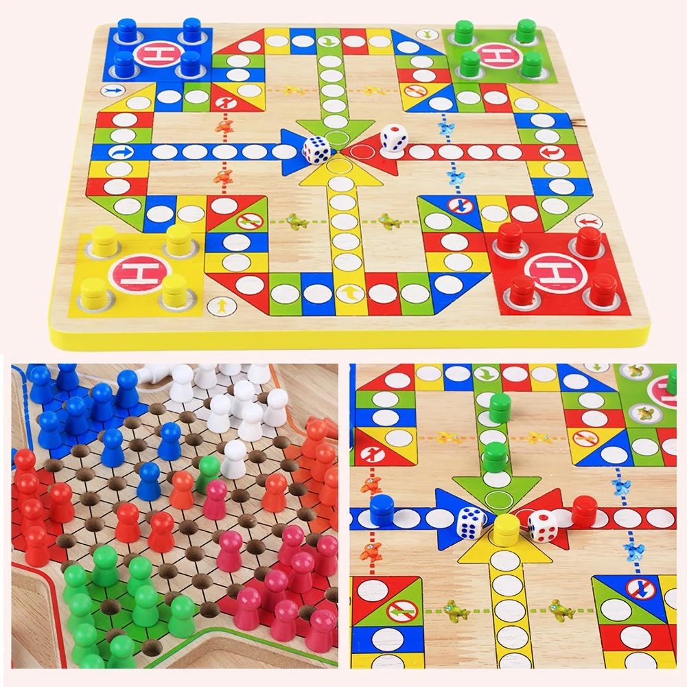 2 в 1 двухслойные деревянные китайские шашки летающие Людо доска набор Детская Семейная Игрушка