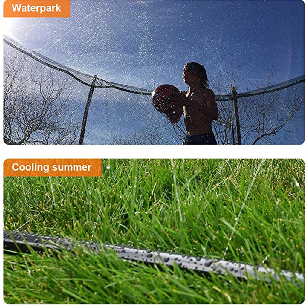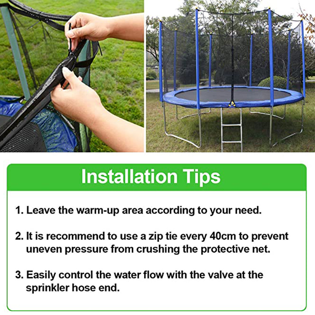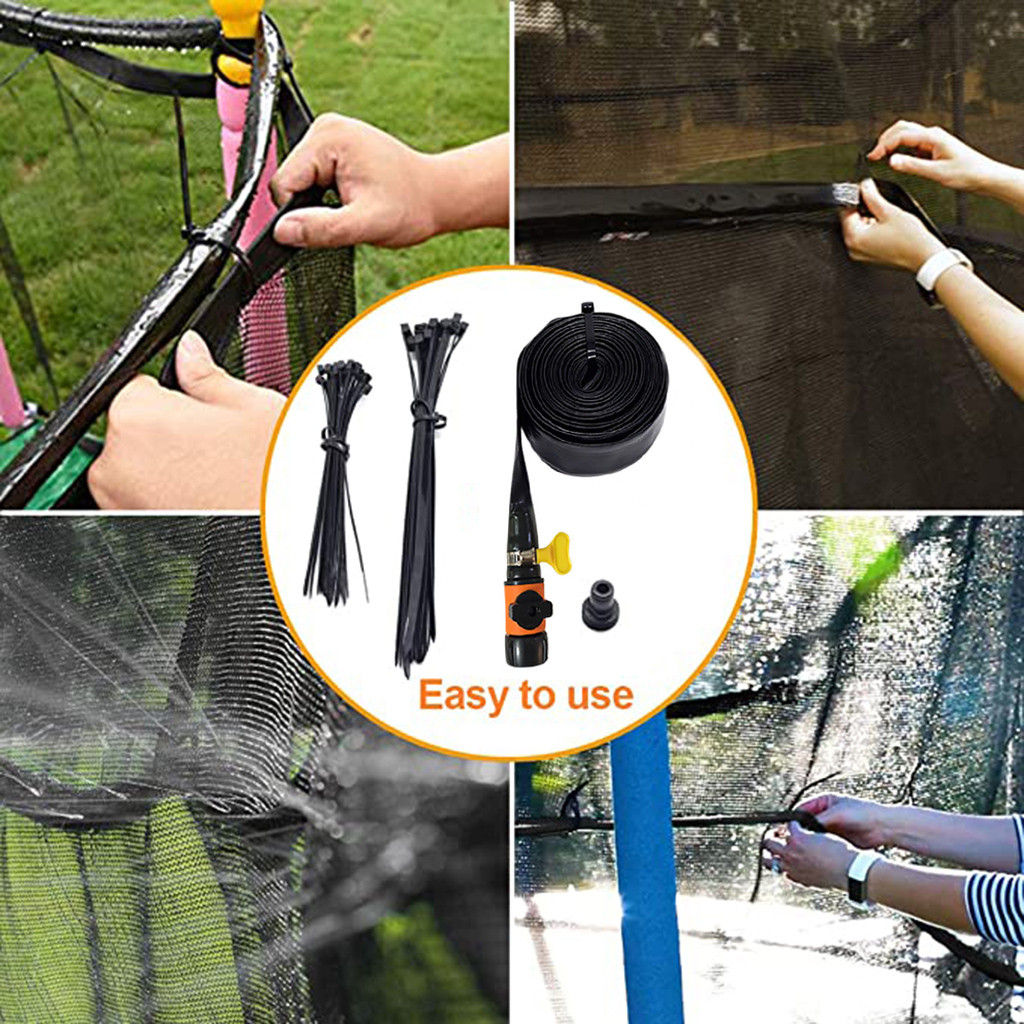 Распылитель воды для трамплина для детей-чтобы не протечь во время использования, долговечность. Эти аксессуары для батутов лучше Выдерживают давление воды, используя более толстый материал. Высококачественный шланг распылителя воды и соединительный переключатель. И нет утечки воды на суставе. Он будет выдерживать тест на время Забавная водяная игра для заднего двора, разбрызгиватель для детей-разбивайте скучный отдых дома. Это веселый трамплин, разбрызгивающий воду, для ваших детей, чтобы покатать на трамплине, развеселить питомцев, семьи и друзей на жарком солнце, и сделать хорошие воспоминания. На домашнем заднем дворике можно наслаждаться этим счастливым и холодным образом Безопасный для игры в батут-Аквапарк-наши спринклеры для воды для трамплина тщательно протестированы и сертифицированы. Изготовлен из экологически безопасного пвх. Спринклерный шланг крепится снаружи, сетка для батута, которая гарантирует, что ваш ребенок не сможет ловить Спринклерный шланг. Идеальные игрушки для детей всех возрастов Простота установки и управления потоком воды-просто установите черный Спринклерный шланг 2 концевой интерфейс и затяните железное кольцо, И использовать стяжки для фиксации ороситель kit на внешней стороне сетка для батута и прикрепить к садовому шлангу. Регулировка переключателя потока воды и давления воды для контроля потока воды, чтобы регулировать интенсивность и угол распыления воды Идея аквапарка для заднего двора-настало время для игр на трамплине на открытом воздухе в жаркое лето. Создание этого, чтобы ваш ребенок был в интересной жизни. Этот водяной батут добавитFunЛето для детей, когда они не могут выйти. Также эти веселые летние игрушки для воды могут уменьшить температуру на батуте. Пусть ваши дети будут веселого времяпрепровожденияПараметры: