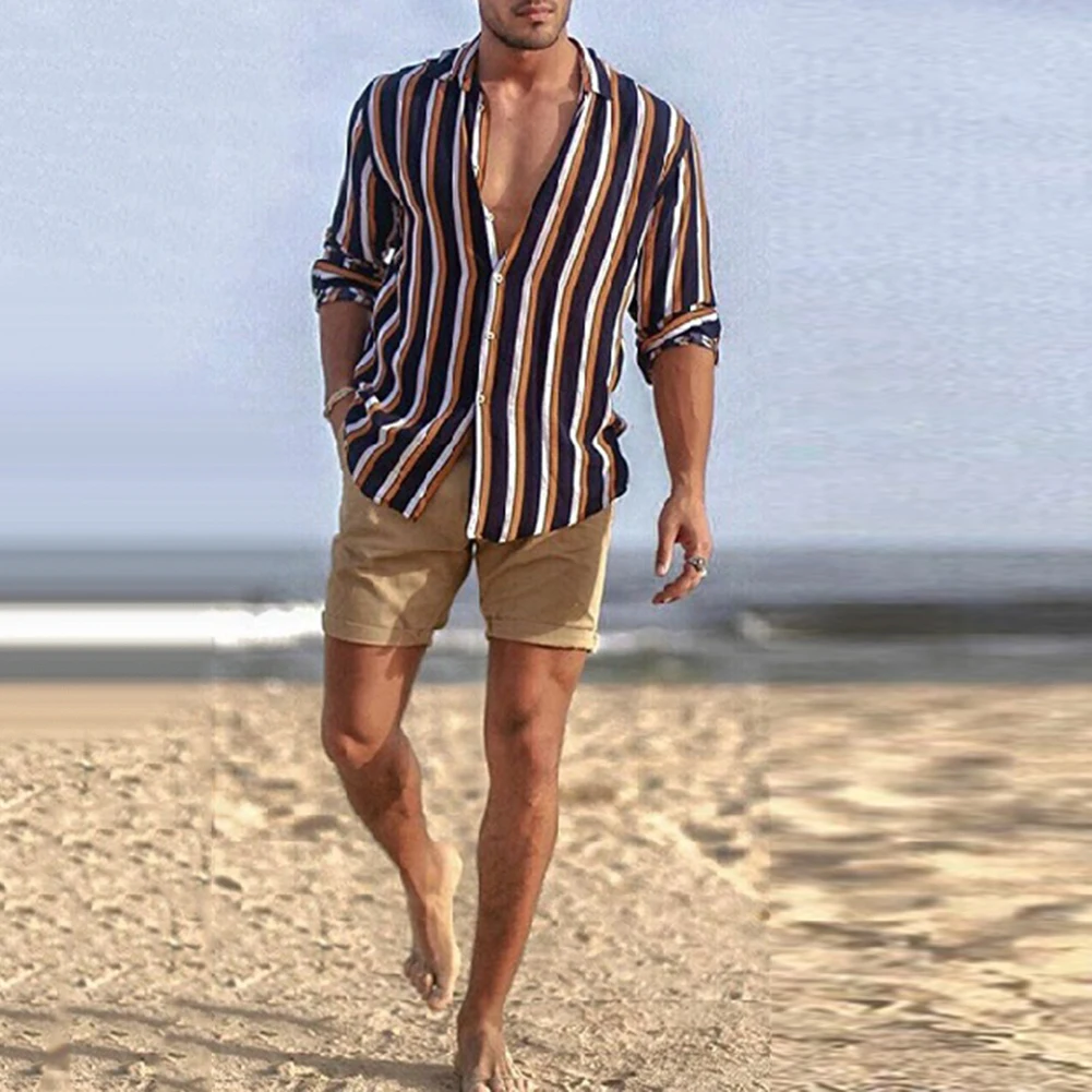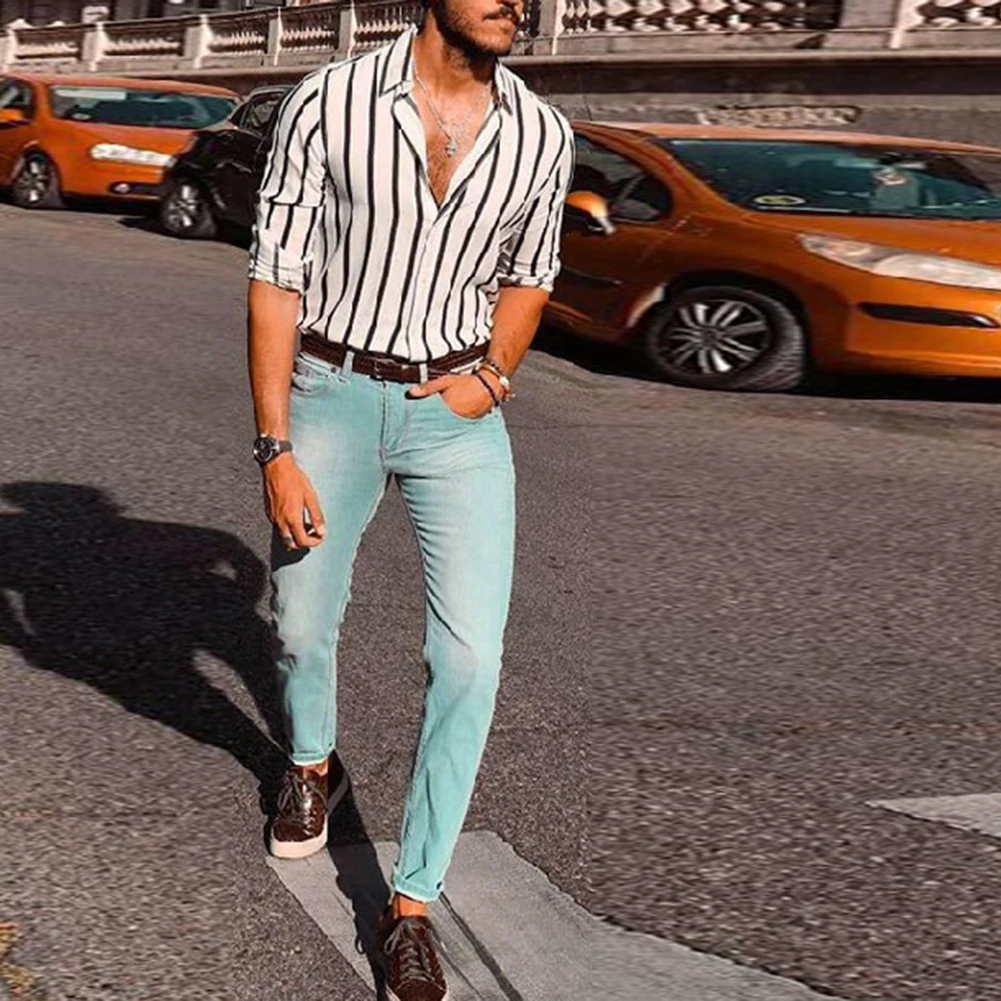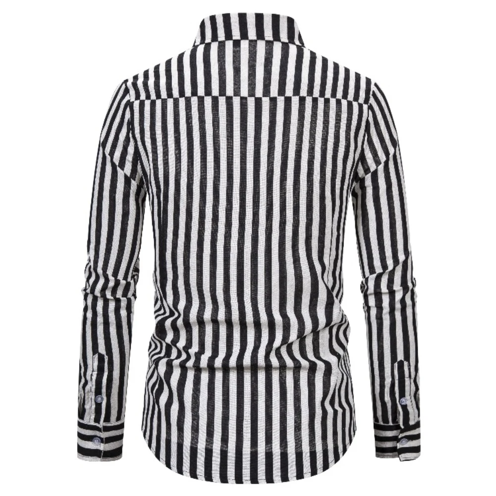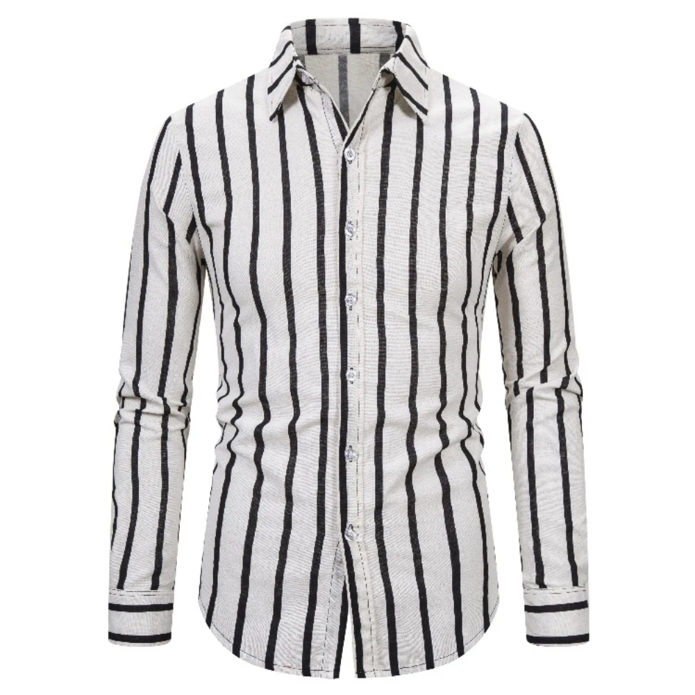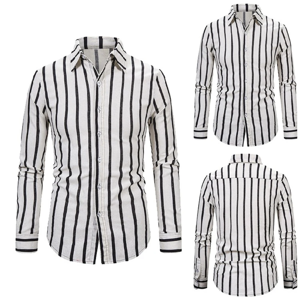 Мужская повседневная приталенная рубашка с длинными рукавами и отложным воротником в Вертикальную Полоску