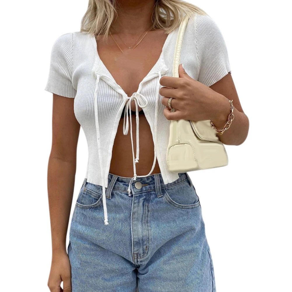 Кроп-Топ разработан с передней повязкой, вы можете связать его, чтобы закрыть.