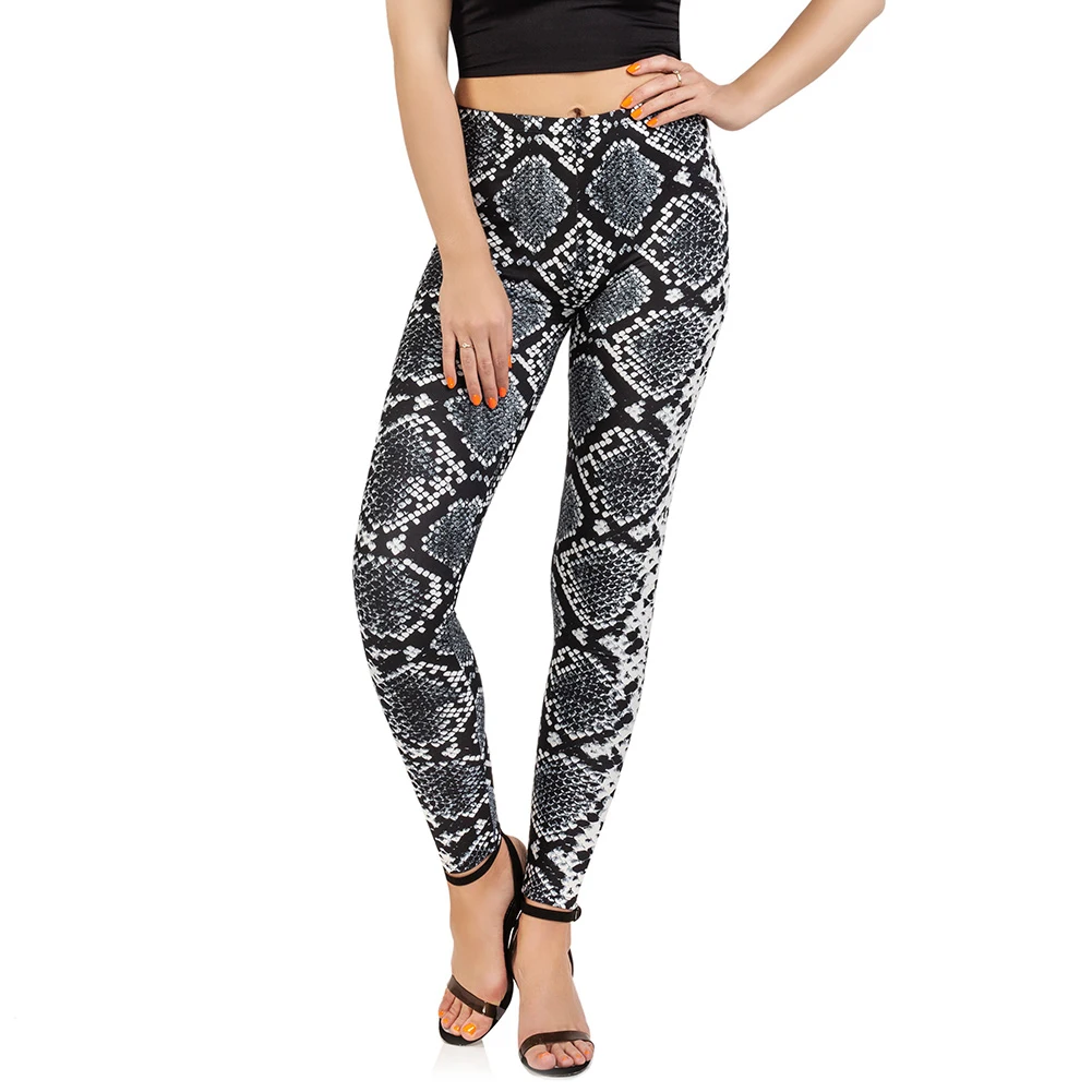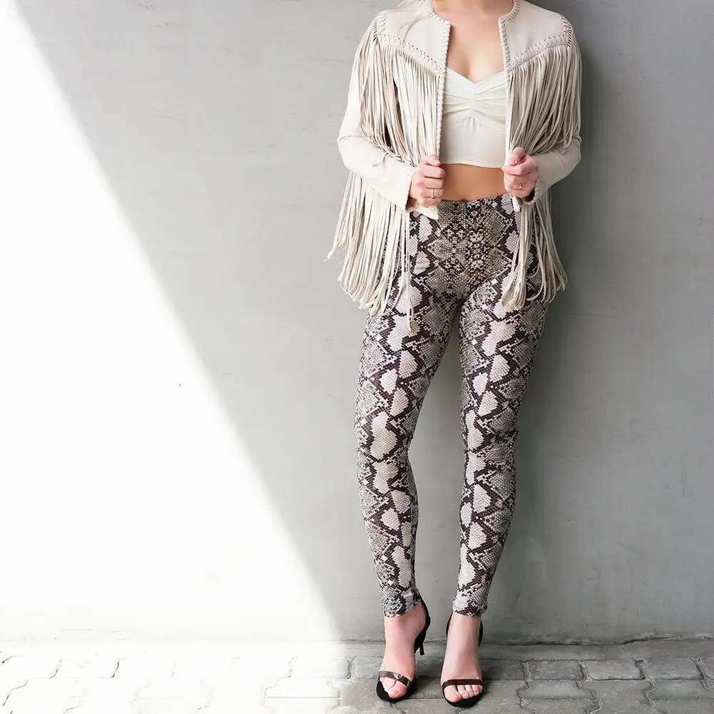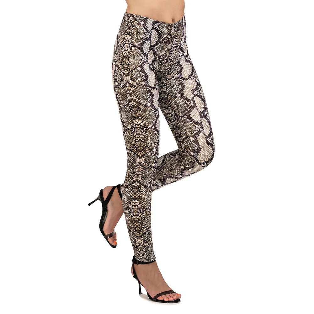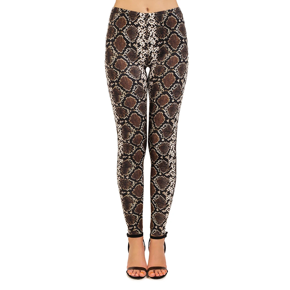 Леггинсы со змеиным принтом, легко сочетаются с любой футболкой, чтобы получить потрясающий вид от дня до ночи.