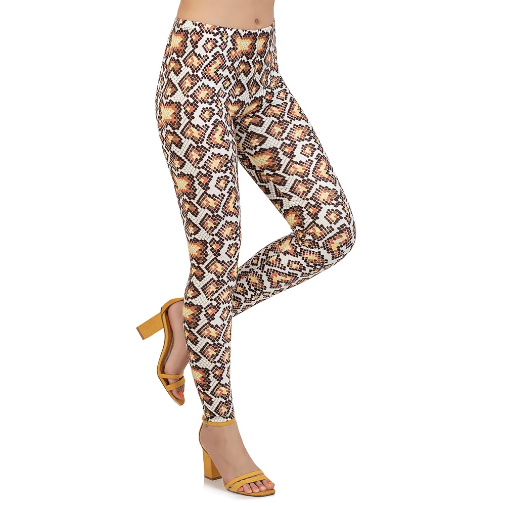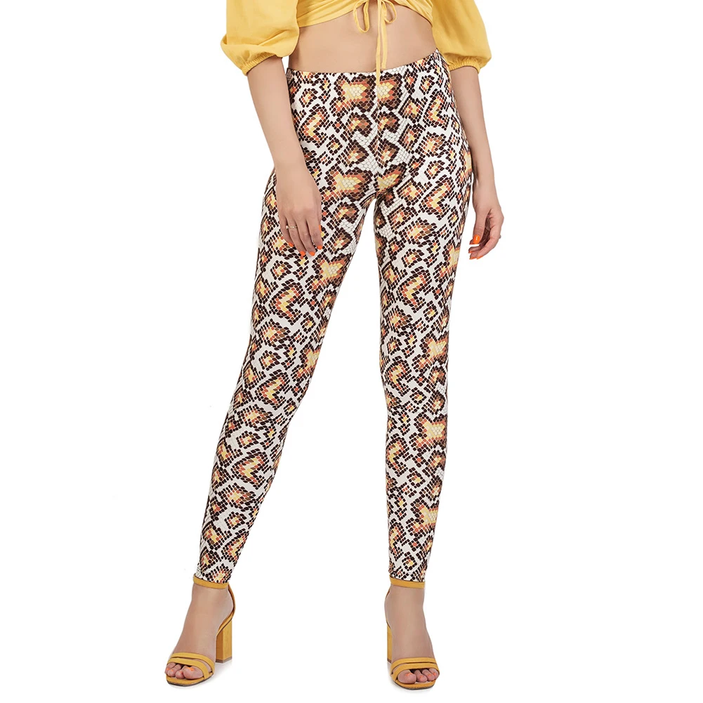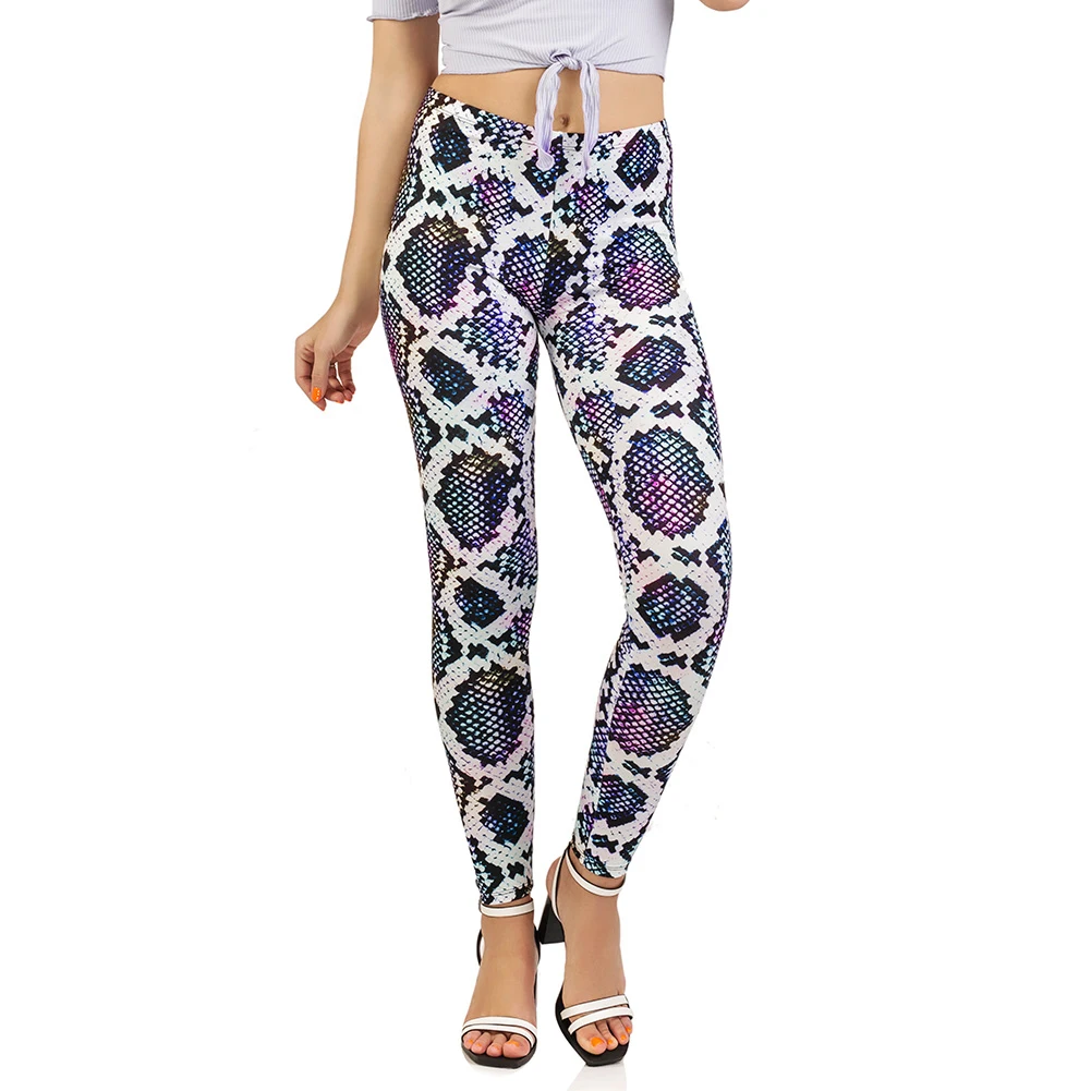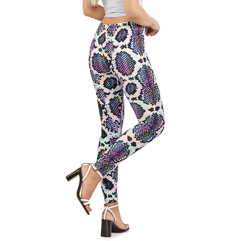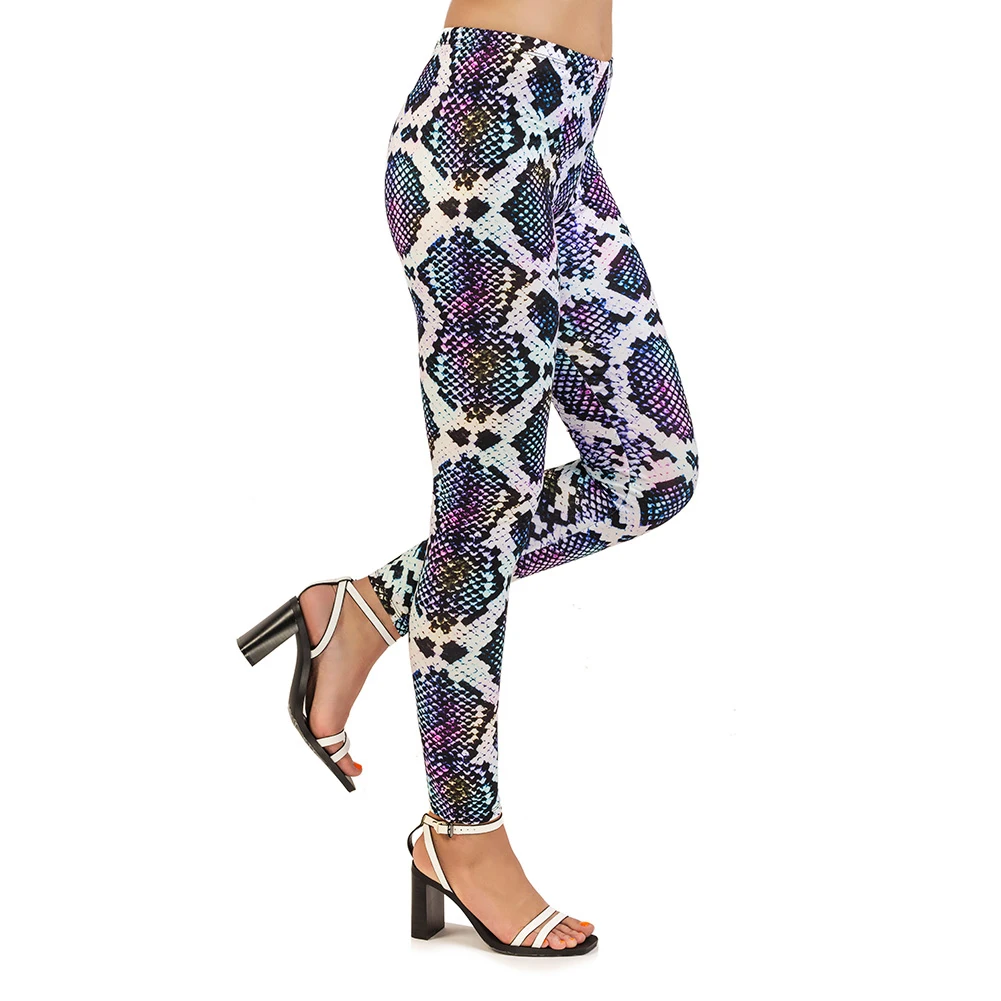 Леггинсы со змеиным принтом, легко сочетаются с любой футболкой, чтобы получить потрясающий вид от дня до ночи.