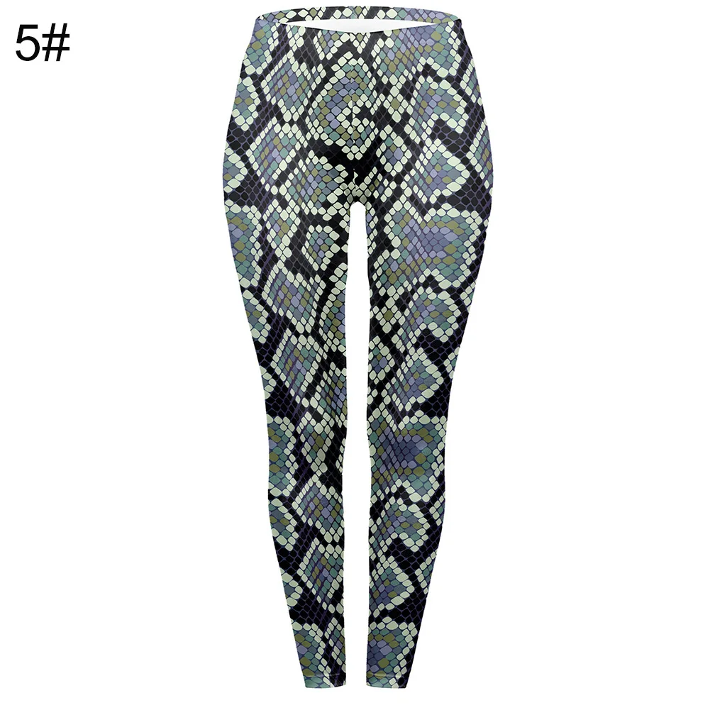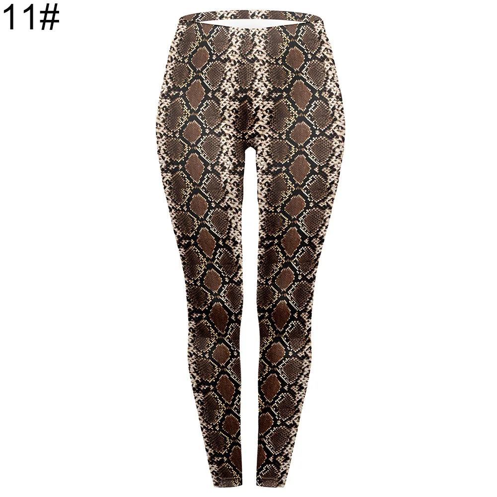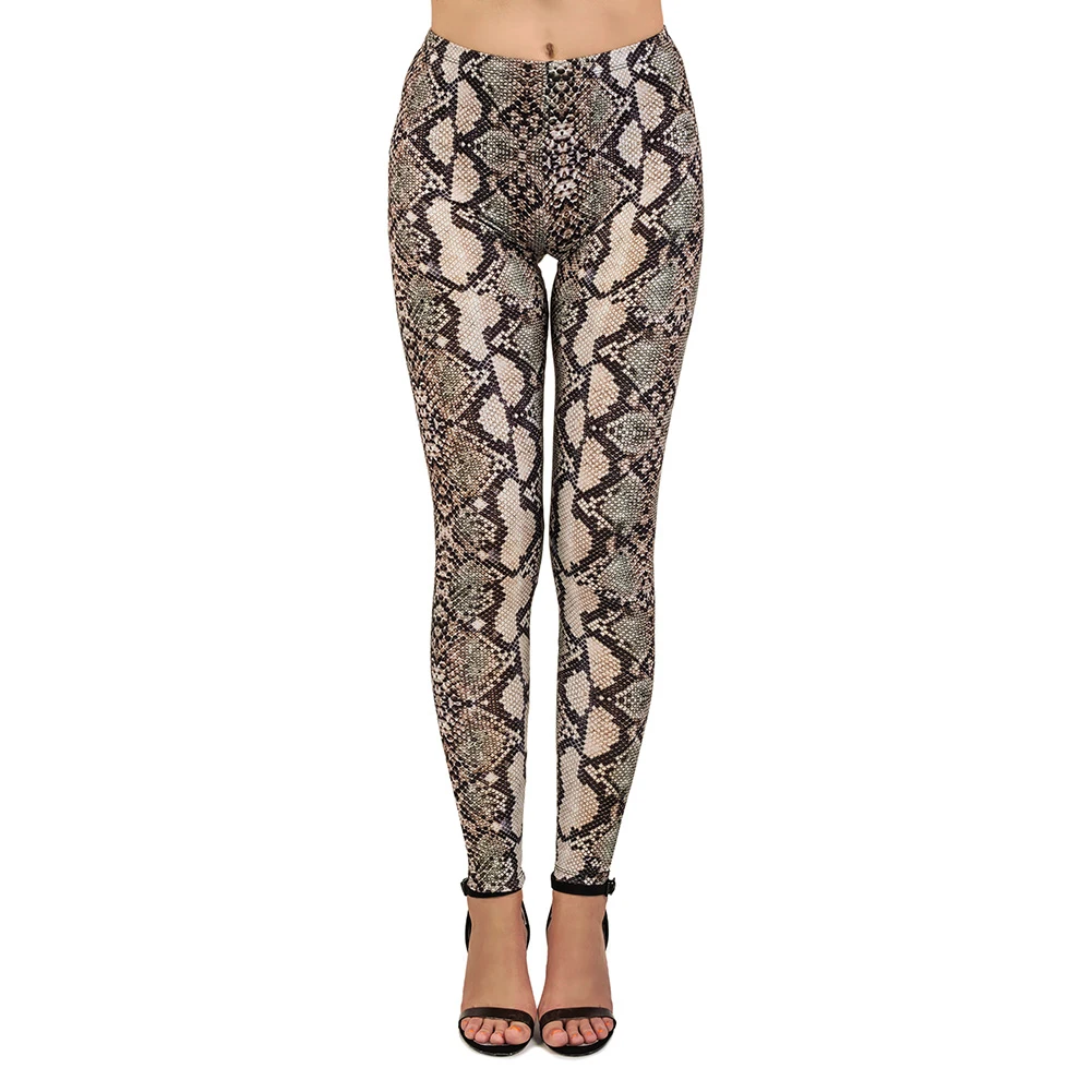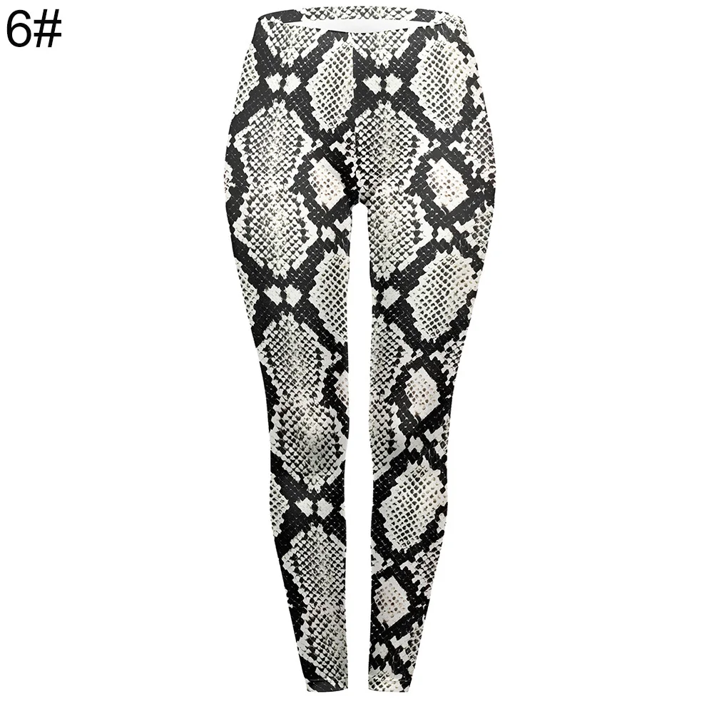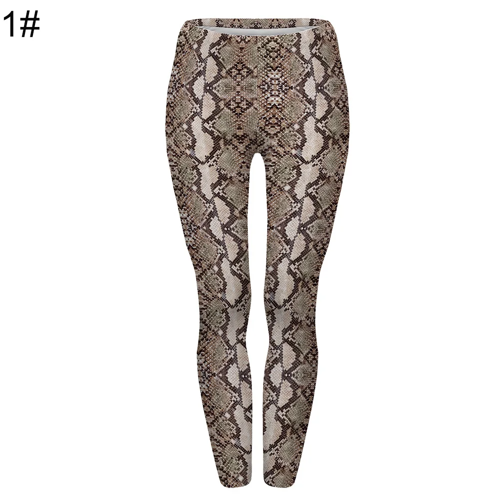 Женские Модные эластичные брюки леггинсы средней высоты со змеиным принтом по щиколотку