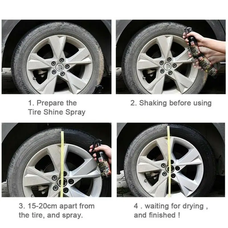 Аэрозоль для автомобильных шин-это специальное, долговечное решение на водной основе, которое обеспечивает блеск выставочного зала и полностью безопасно для всех шин и резиновой отделки! Спрей проникает и крепится к шине, чтобы предотвратить растрескивание, выцветание и погоду, сохраняя ваши шины блестящими и влажными в течение многих недель!