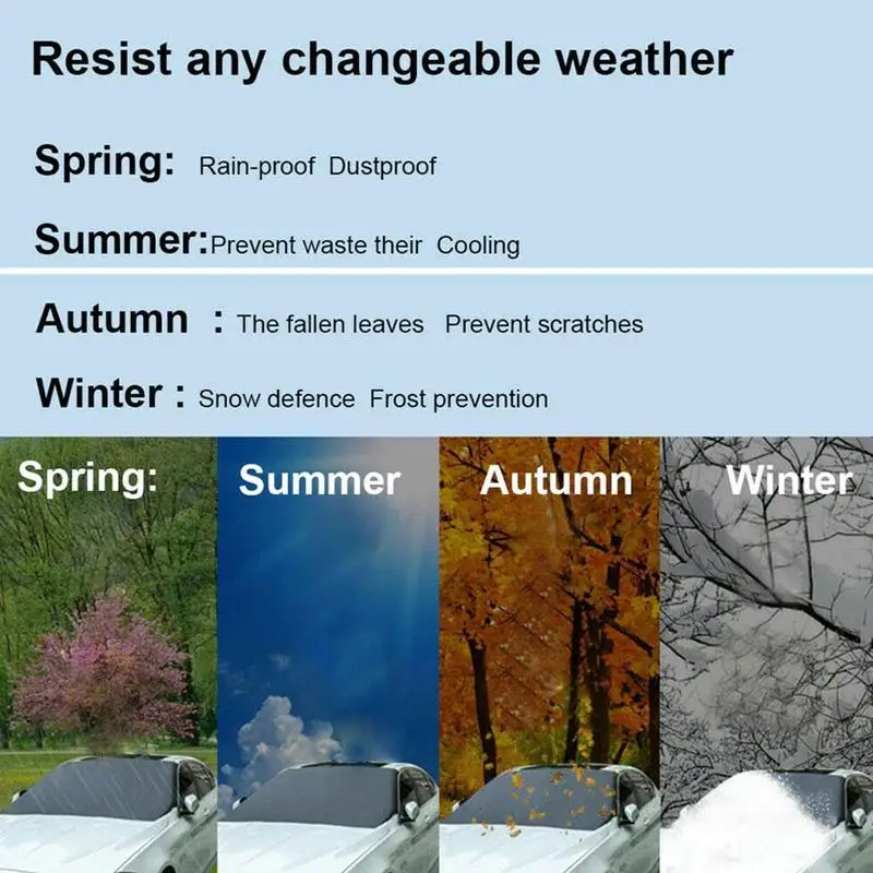 3. 6 мощных магнитов на верхней стороне, чтобы сохранить внешнее ветровое стекло снежного покрова на месте даже в ветреные дни, крышка автомобильного лобового стекла может быть заправлена в ваши двери автомобиля, гарантируем, что эта крышка лобового стекла не будет легко открываться. Даже самые сильные ветры не подходят для этого лобового стекла снежные Чехлы магнитный держатель!
