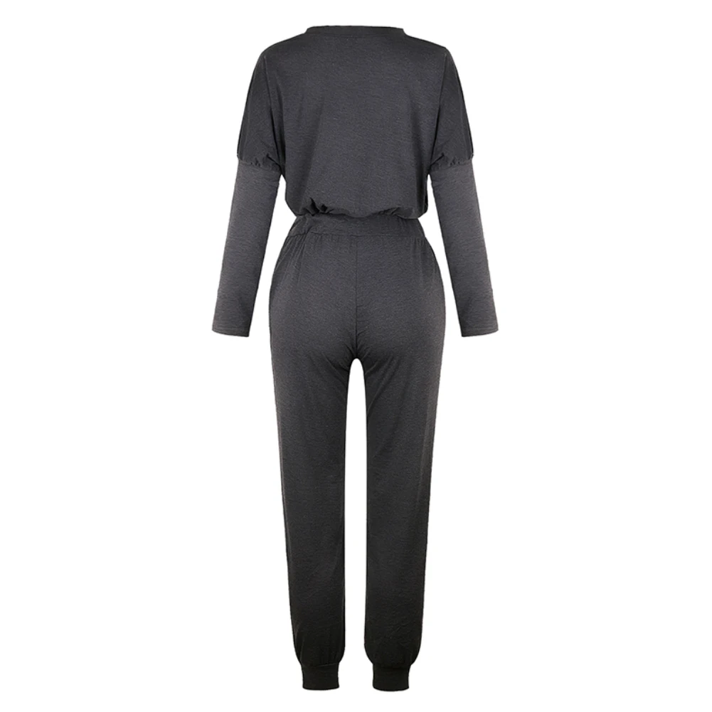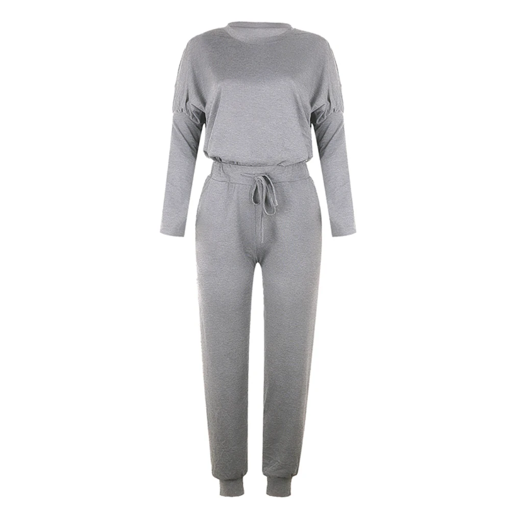 Женский однотонный спортивный костюм с длинным рукавом и круглым вырезом