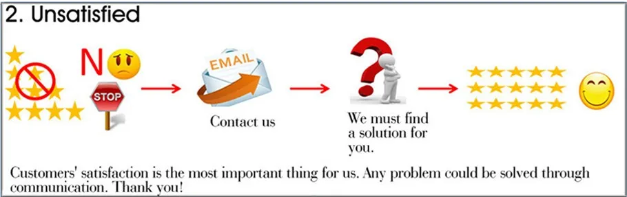 Потому что Ваше удовлетворение-наша цель. Пожалуйста, не оставляйте отрицательные или нейтральные отзывы и не открывайте спор на Aliexpress без связи, спасибо. Мы считаем, что наше общение решит проблему для вас. И это не подведет вас. Вы знаете, что любой отрицательный или нейтральный или спор повредит обе стороны, и не позволит решить проблему. Пожалуйста, не стесняйтесь связаться с нами из-за разницы во времени между Китаем и вашим местоположением, иногда ответ на ваше сообщение будет отложен на 6-10 часов. Мы отвечаем на сообщения с понедельника по пятницу в обычные рабочие часы, и большинство сообщений ответят в течение 1-2 рабочих дней. Пожалуйста, будьте терпеливы! Спасибо!