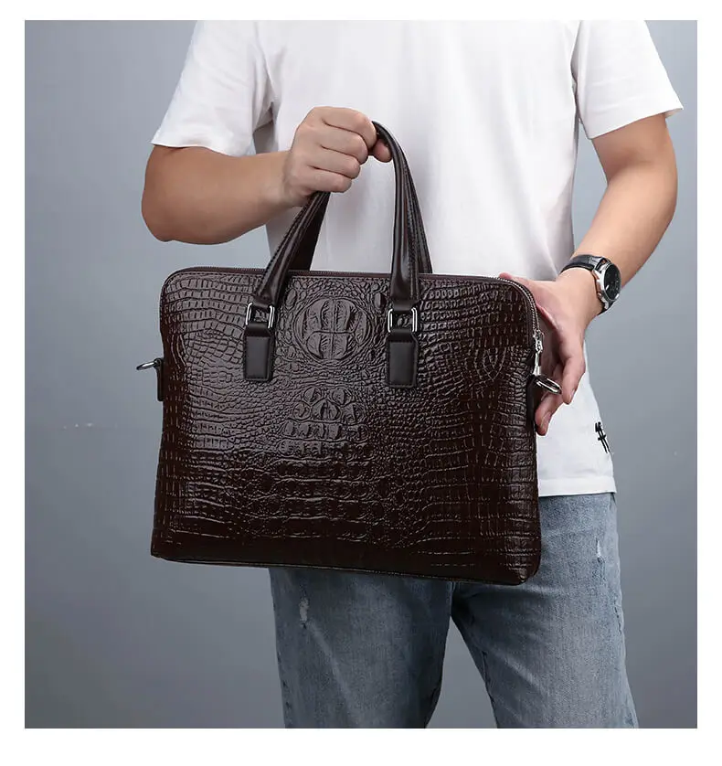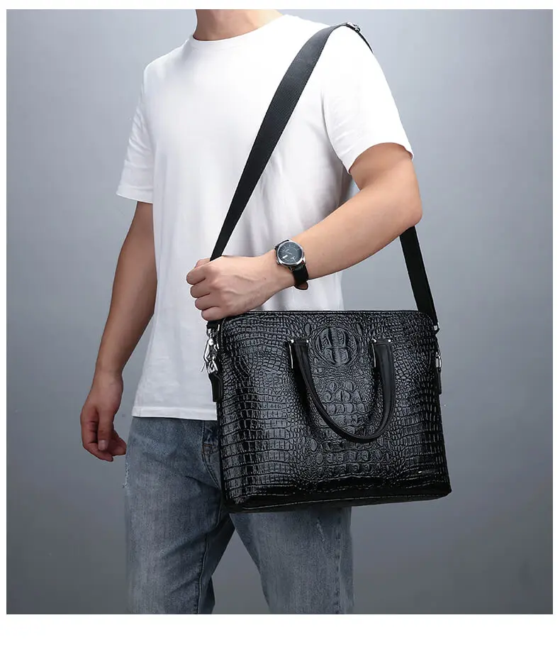 Двухслойная мужская сумка, Мужские портфели, кожаные сумки, крокодиловый узор, сумка на плечо, мужская деловая сумка для ноутбука, Sac Homme