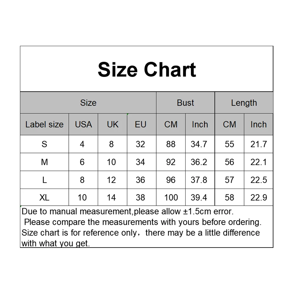 [Наш Размер S] Обхват груди: 88 см/34,6 дюйма, длина: 55 см/21,7 дюйма (прибл.)