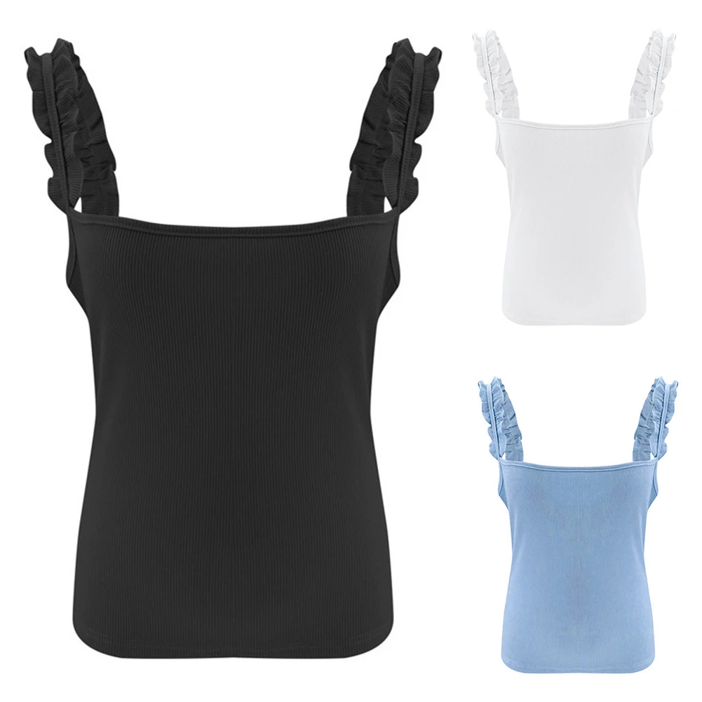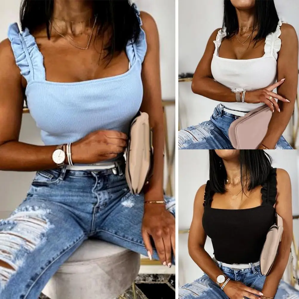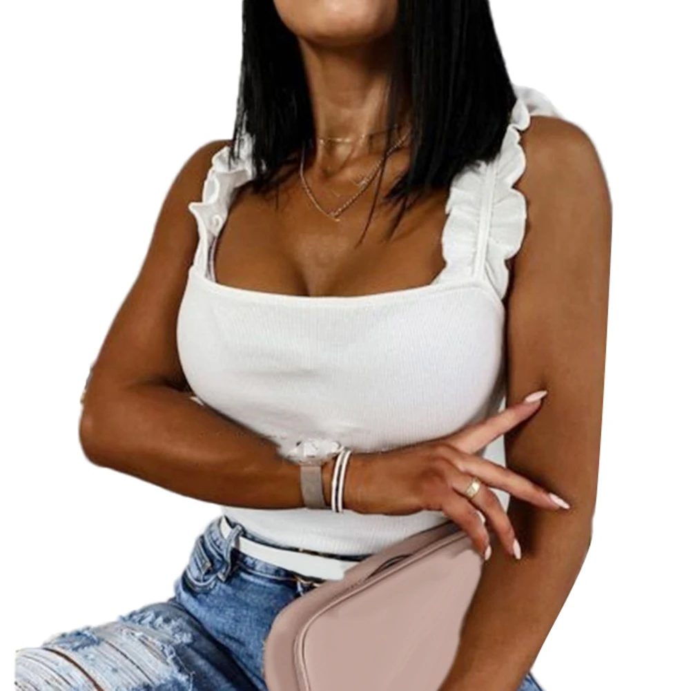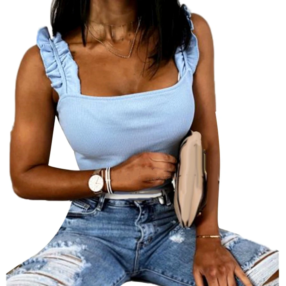 Женская блузка с квадратным вырезом, без рукавов, лямки с оборками и открытой спиной