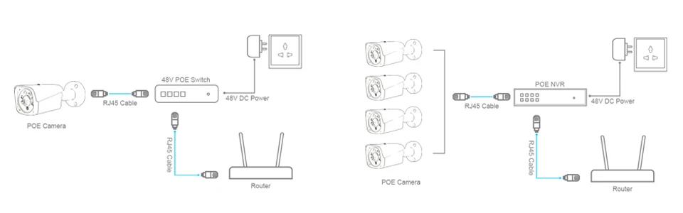 1: Подключите камеру к 48VPOE коммутатору 2: Подключите камеру к сети plug and play POE NVR (48 В)