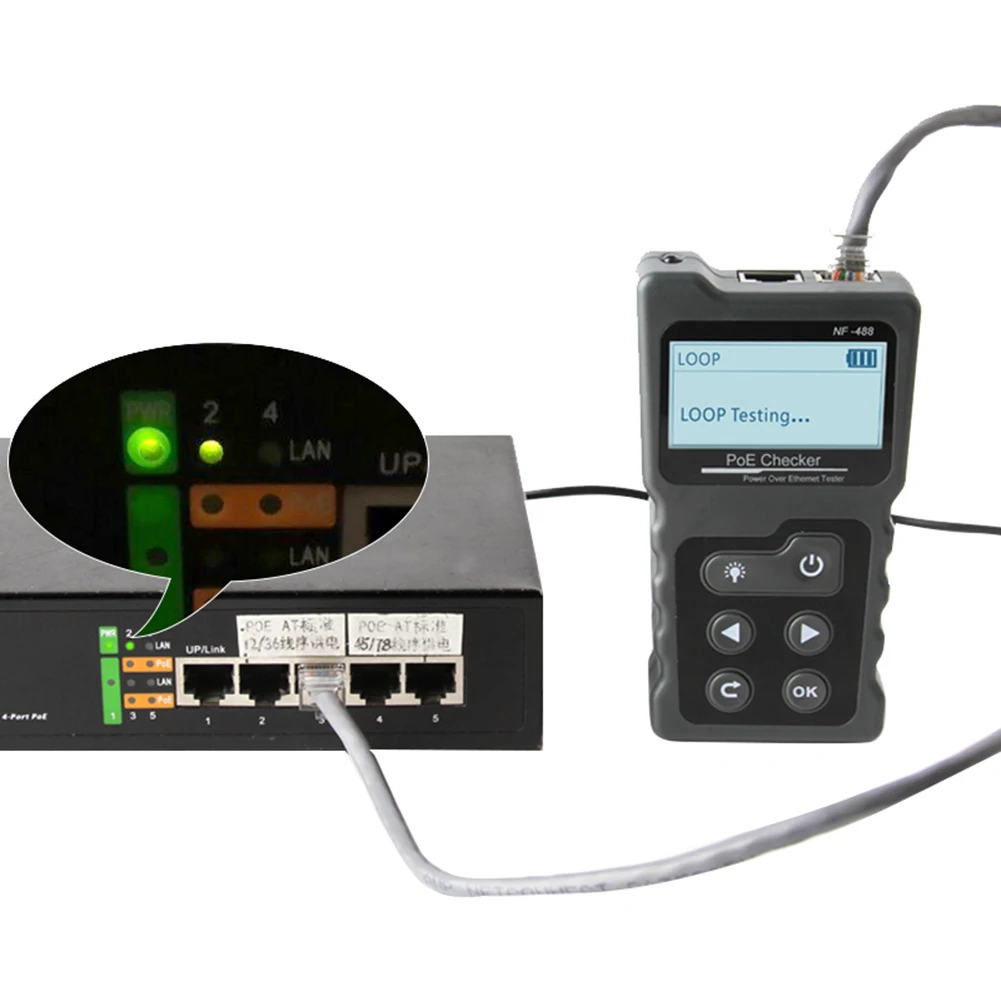 Сетевые инструменты NF-488 цифровой Ethernet CAT5 CAT6 сетевой кабель PoE коммутатор тестер детектор с ЖК-дисплеем тестер сетевого кабеля