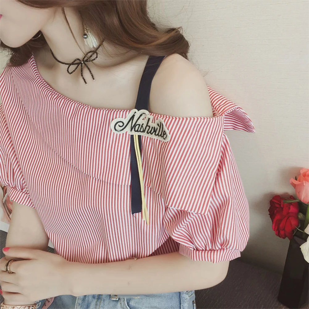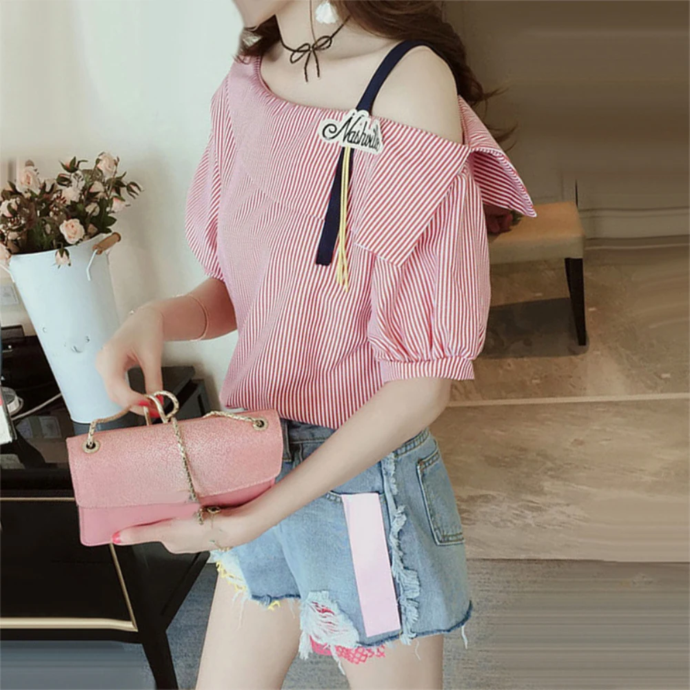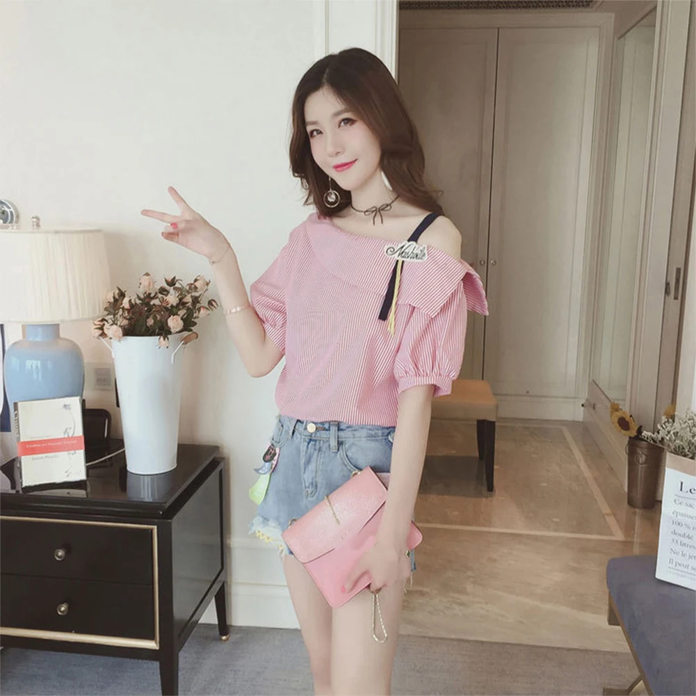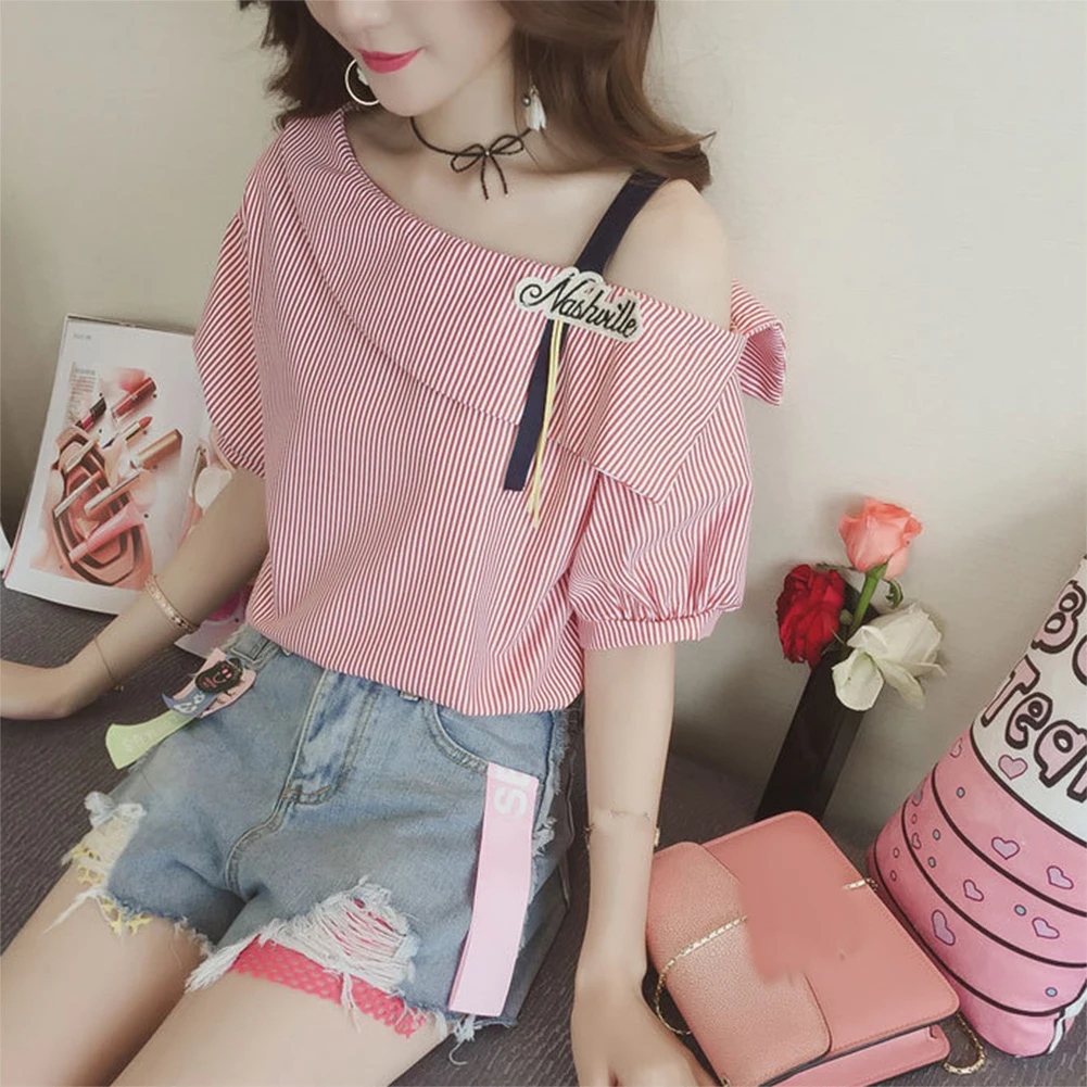 Женская свободная туника в полоску с рукавом до локтя на одно плечо