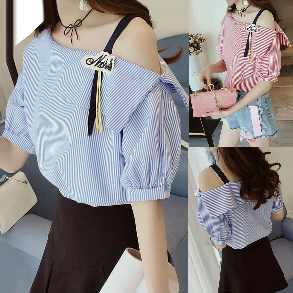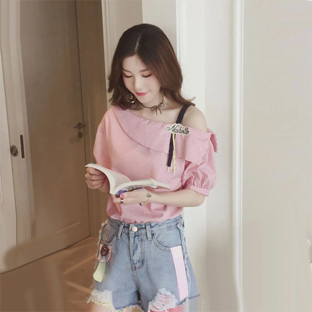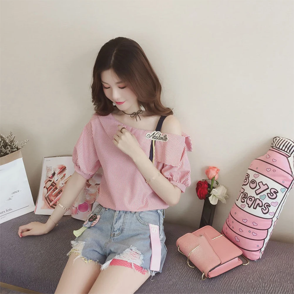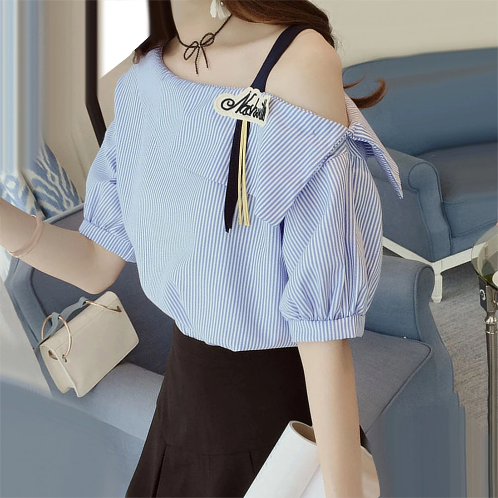 Женская свободная туника в полоску с рукавом до локтя на одно плечо