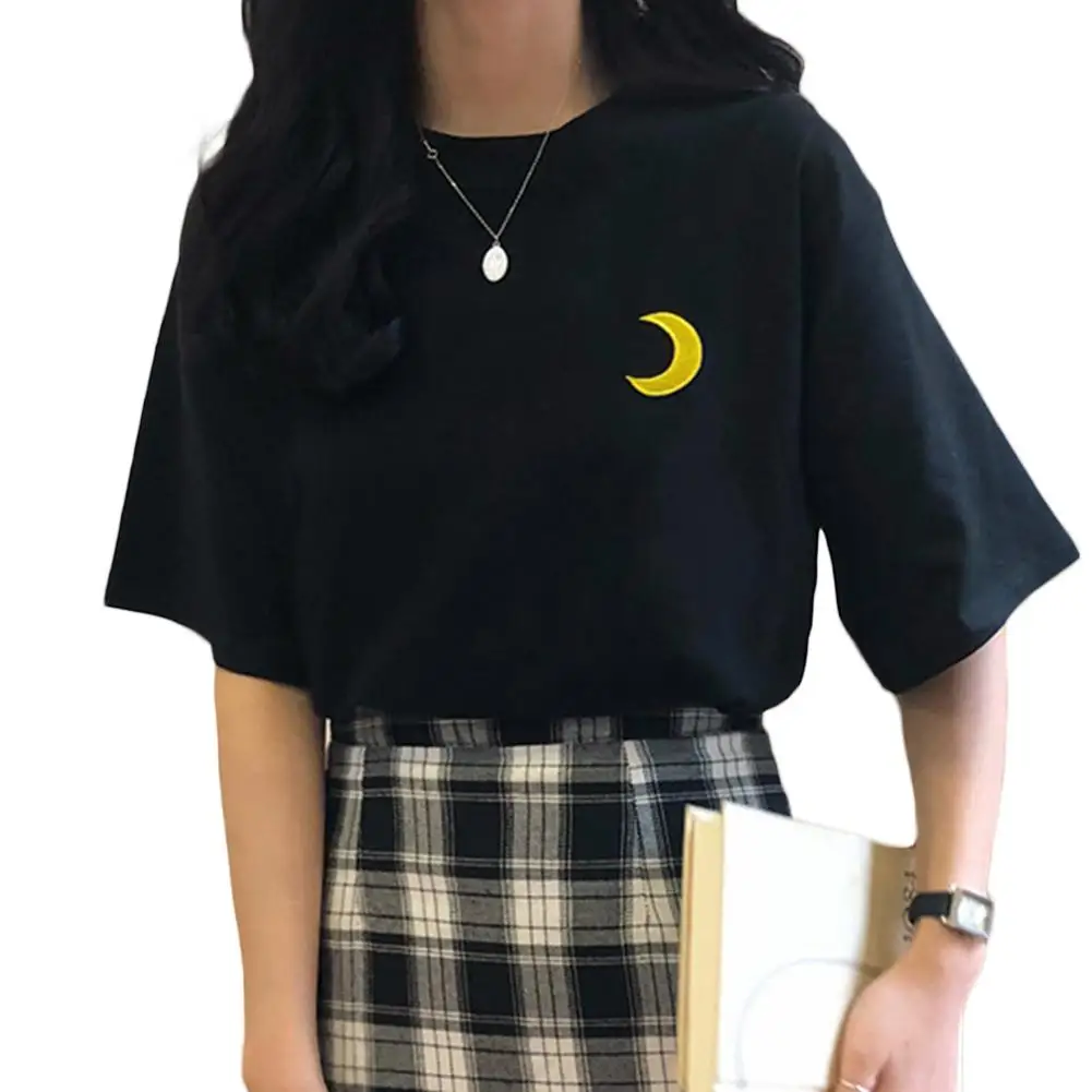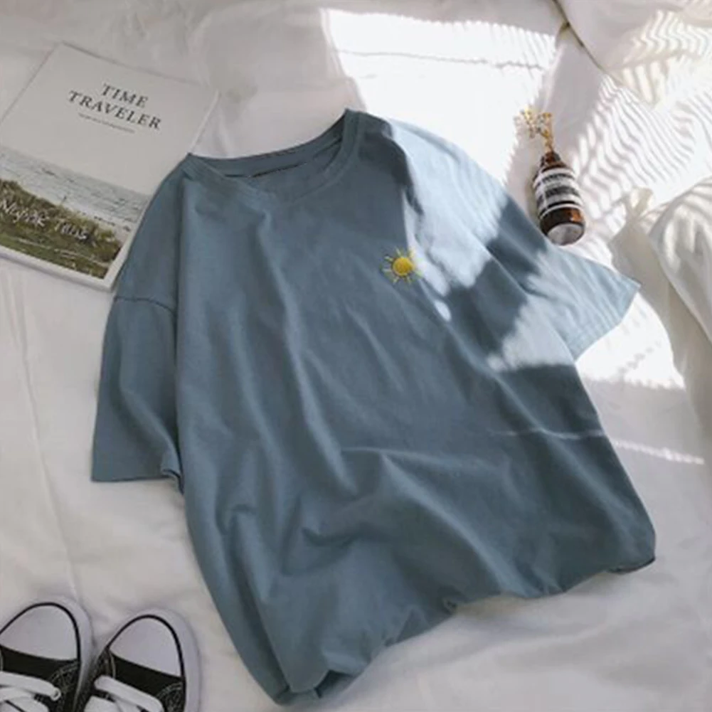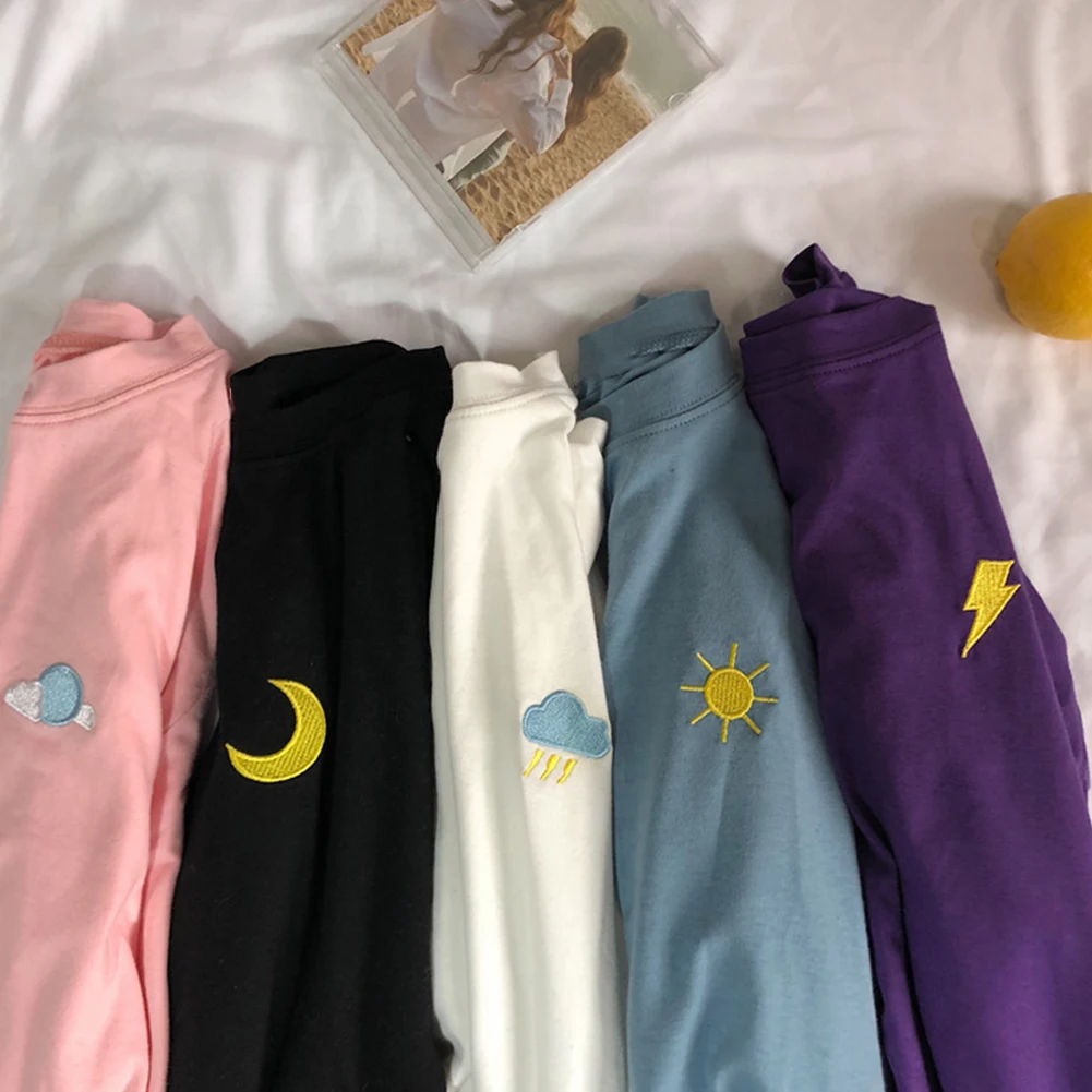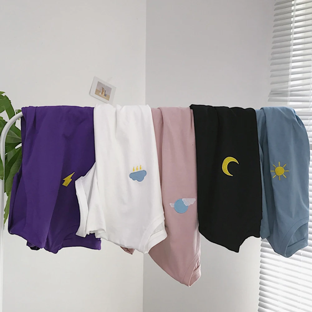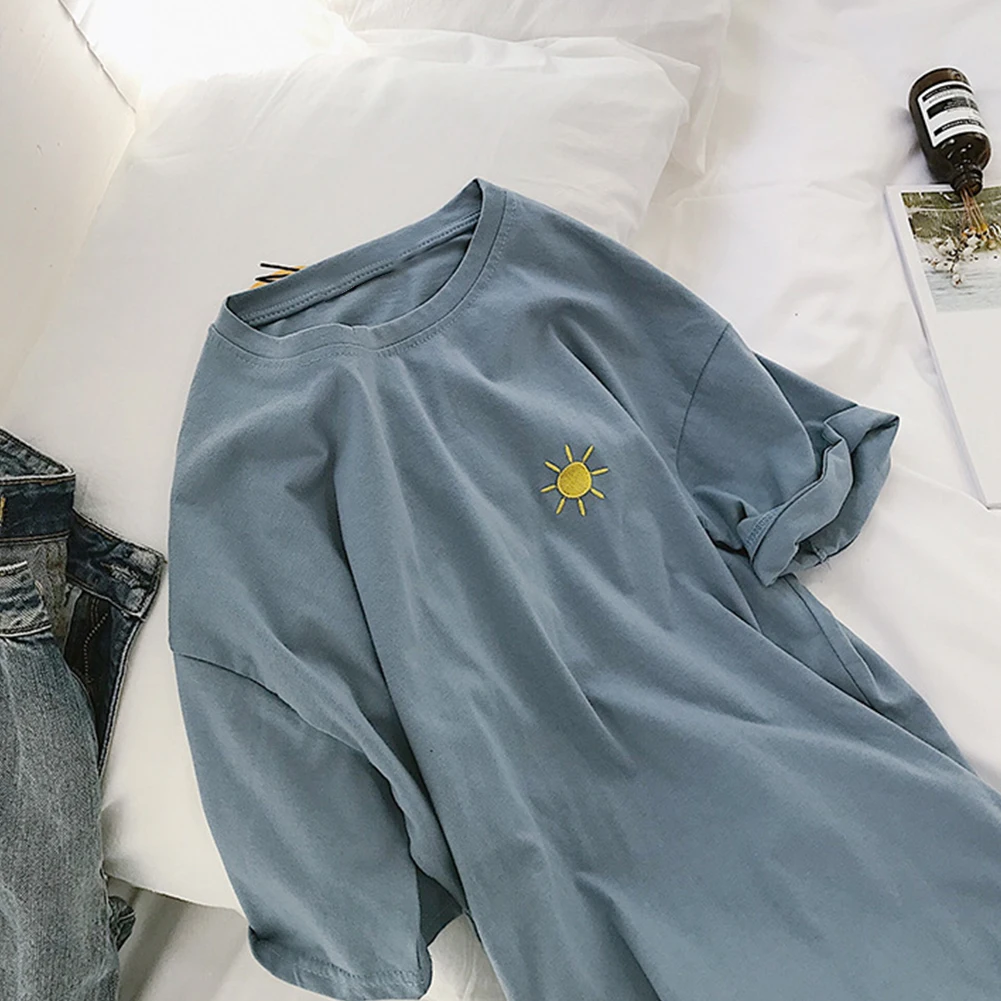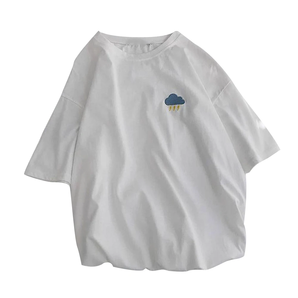 Модная женская летняя футболка, топ с рисунком погоды, футболка с вышивкой, короткий рукав, круглый вырез, свободная футболка, Топ для женщин