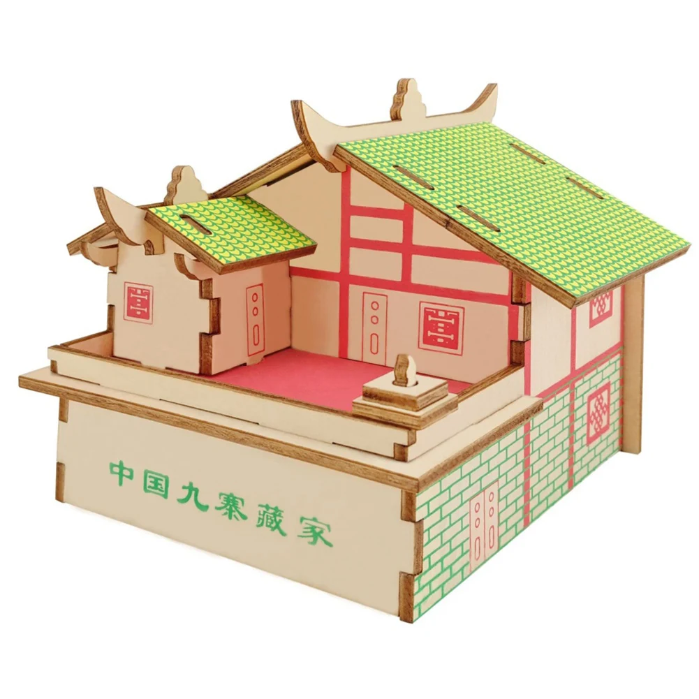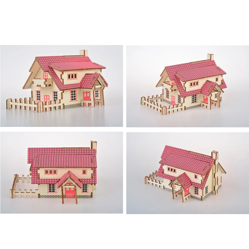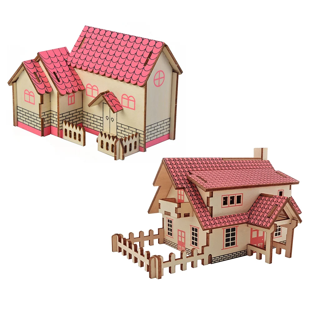 2Pcs Kids DIY Assembly Wooden 3D House Model Jigsaw Puzzle Learning Education Toy
