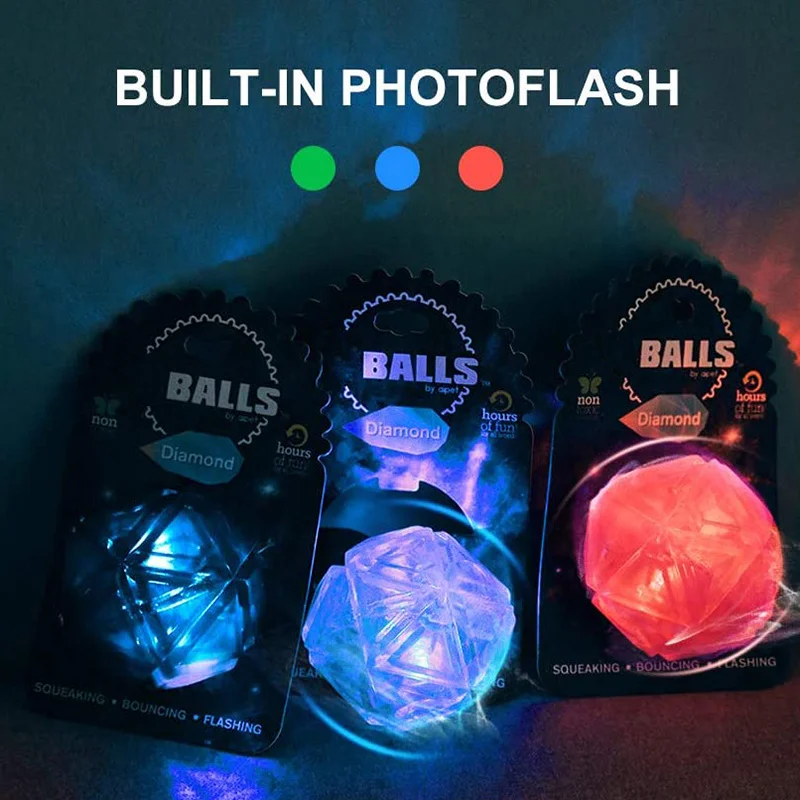Интересные флэш-память:Мяч будет светиться, когда он попадет, и длится 12 секунд, что будет привлекать внимание собаки. Даже в темноте, ваша собака может играть с мигающим мячом счастливо, так как мигающий может сказать собаке, где он находится.