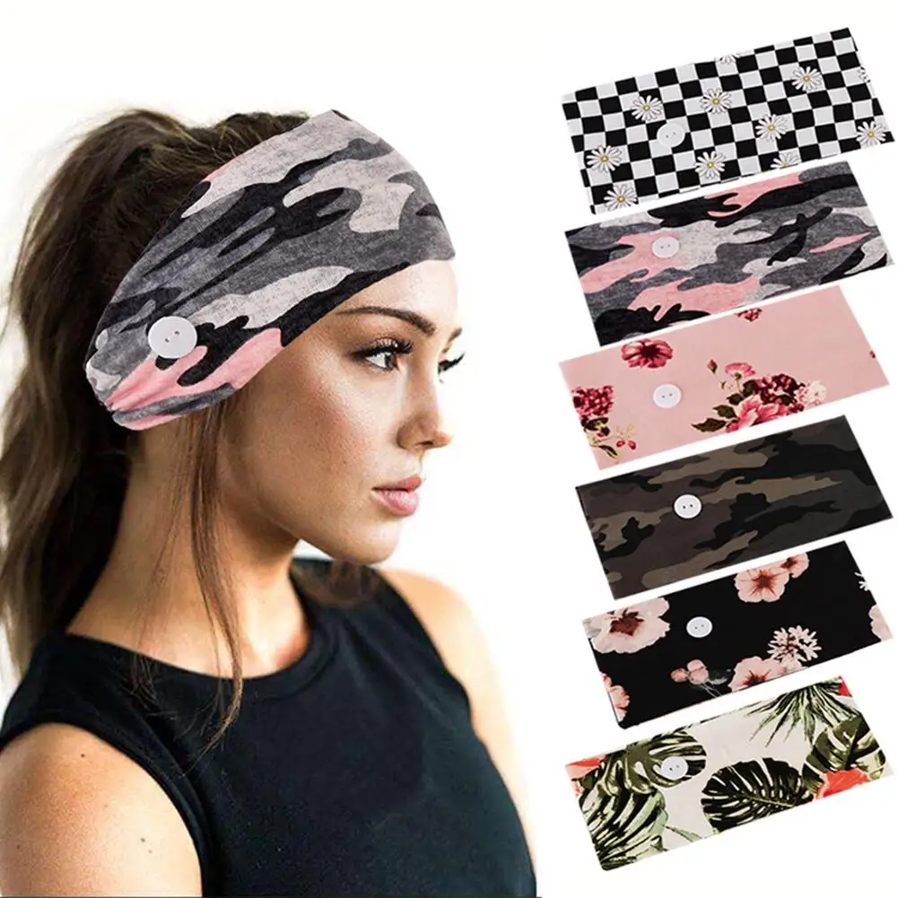 2 шт. Цветочная камуфляжная головная повязка с принтом и пряжкой эластичная спортивная повязка для волос