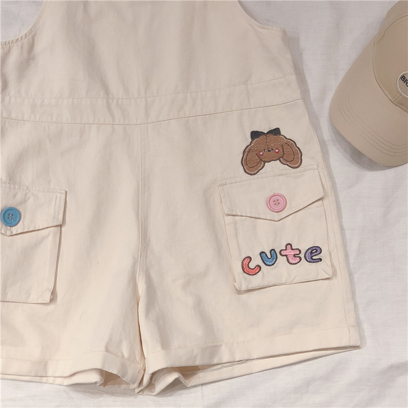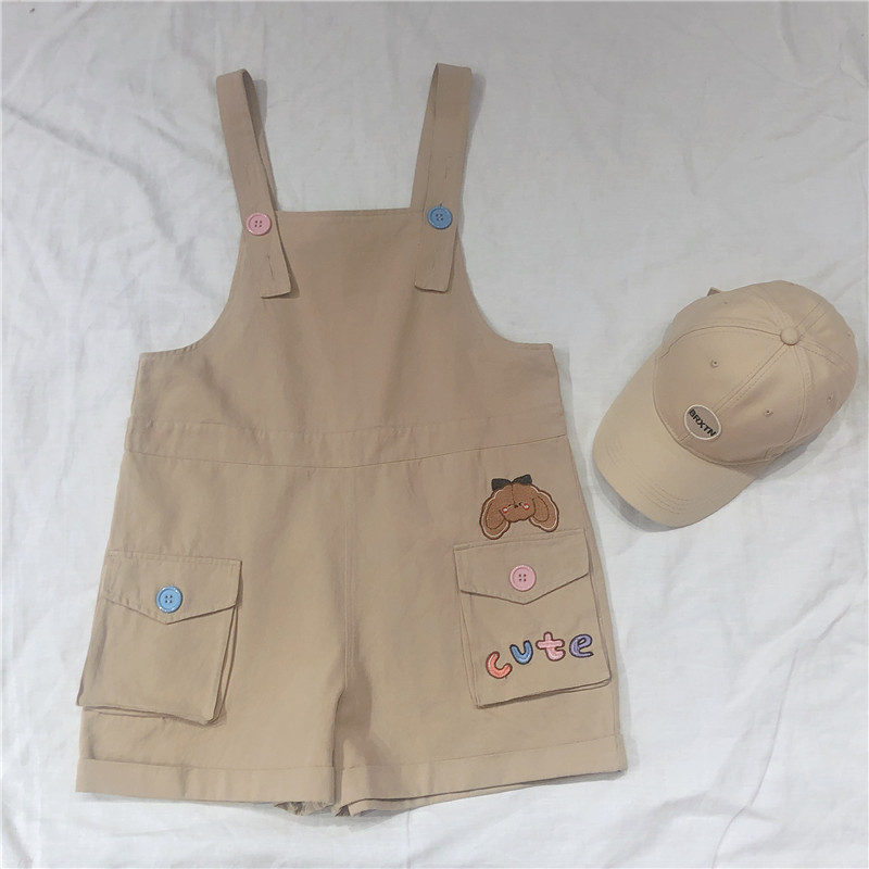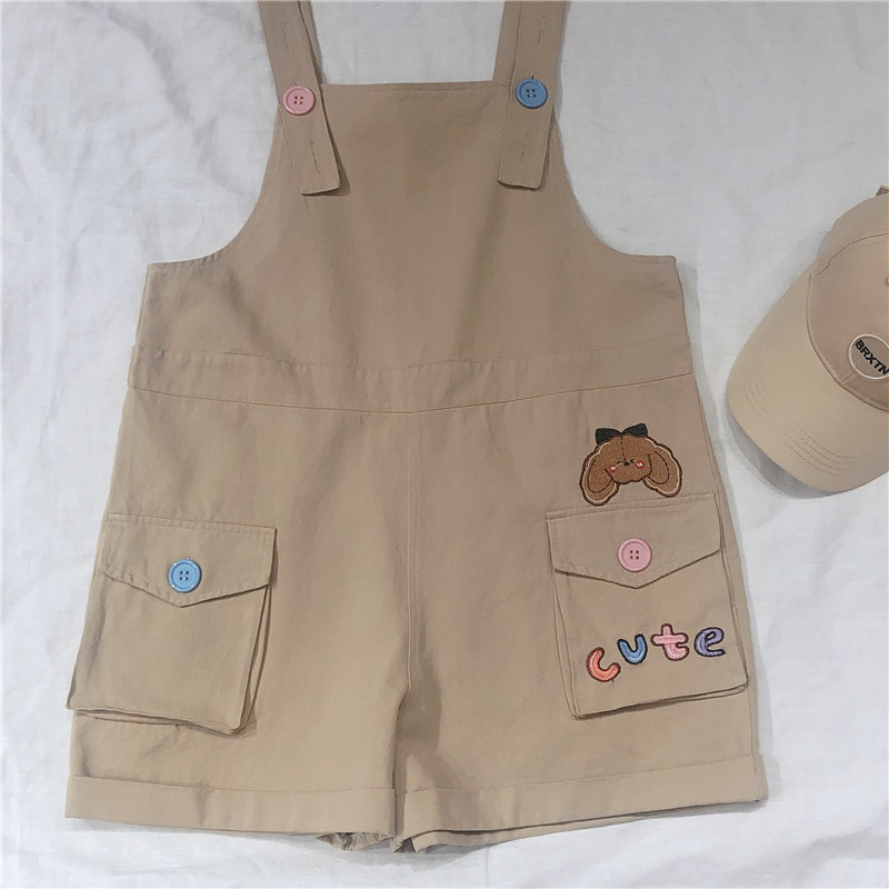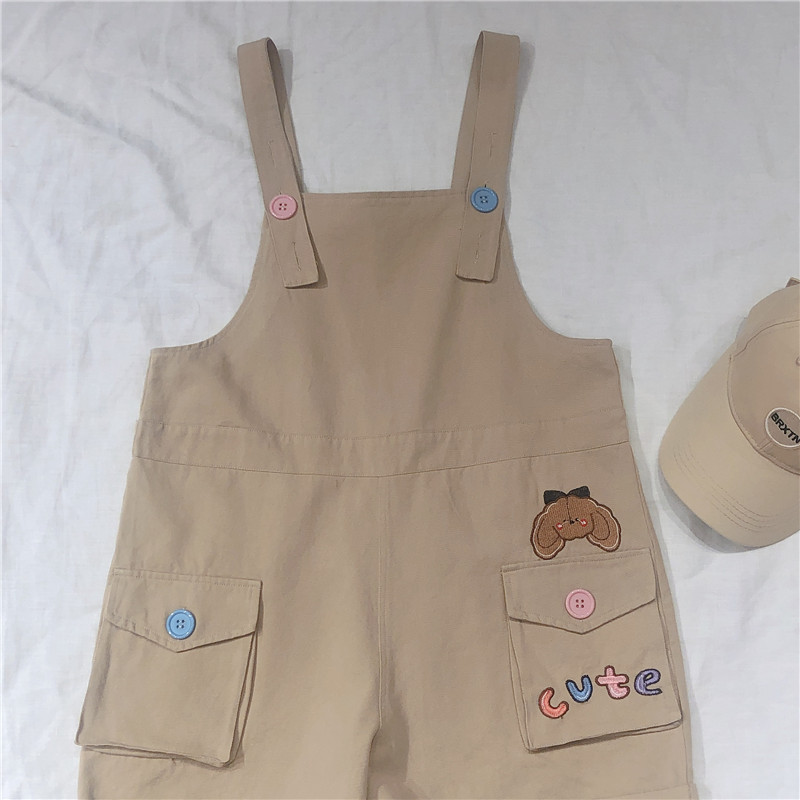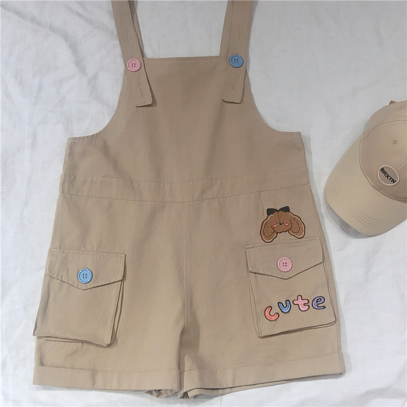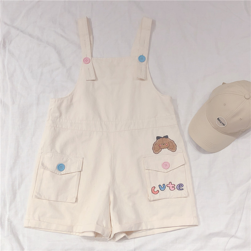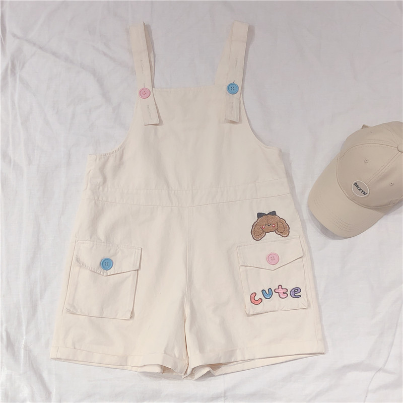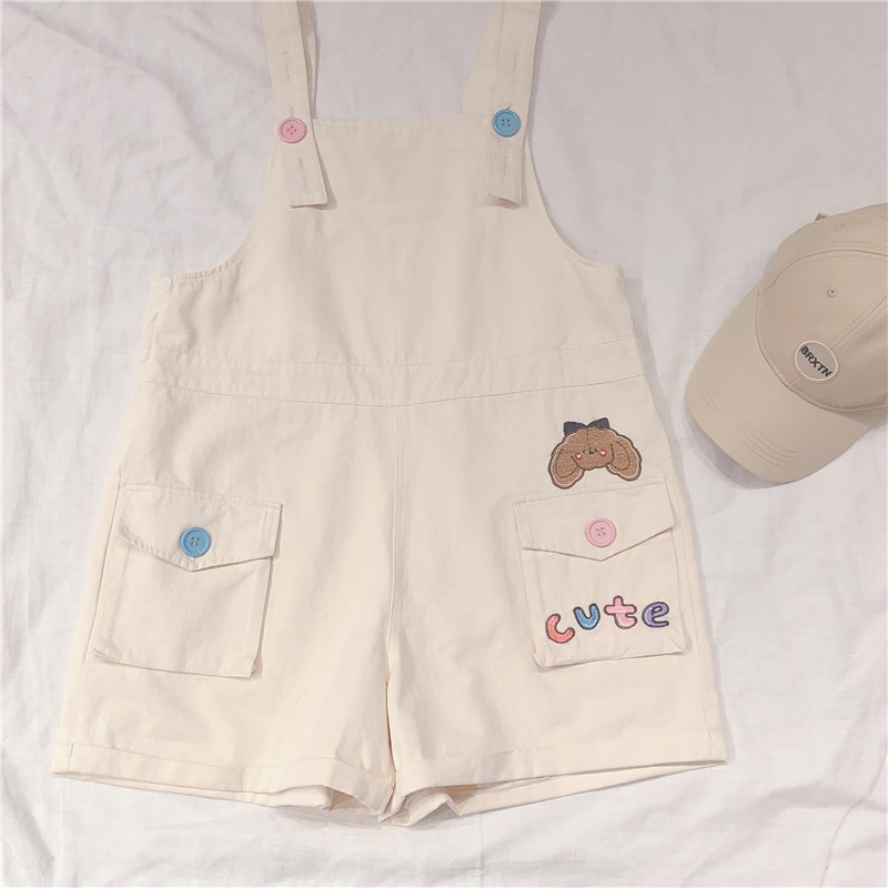 Новые летние шорты на лямках 2020, повседневные шорты, Свободные Студенческие комбинезоны для девочек, повседневные милые шорты с вышитая Подвеска из мультфильма