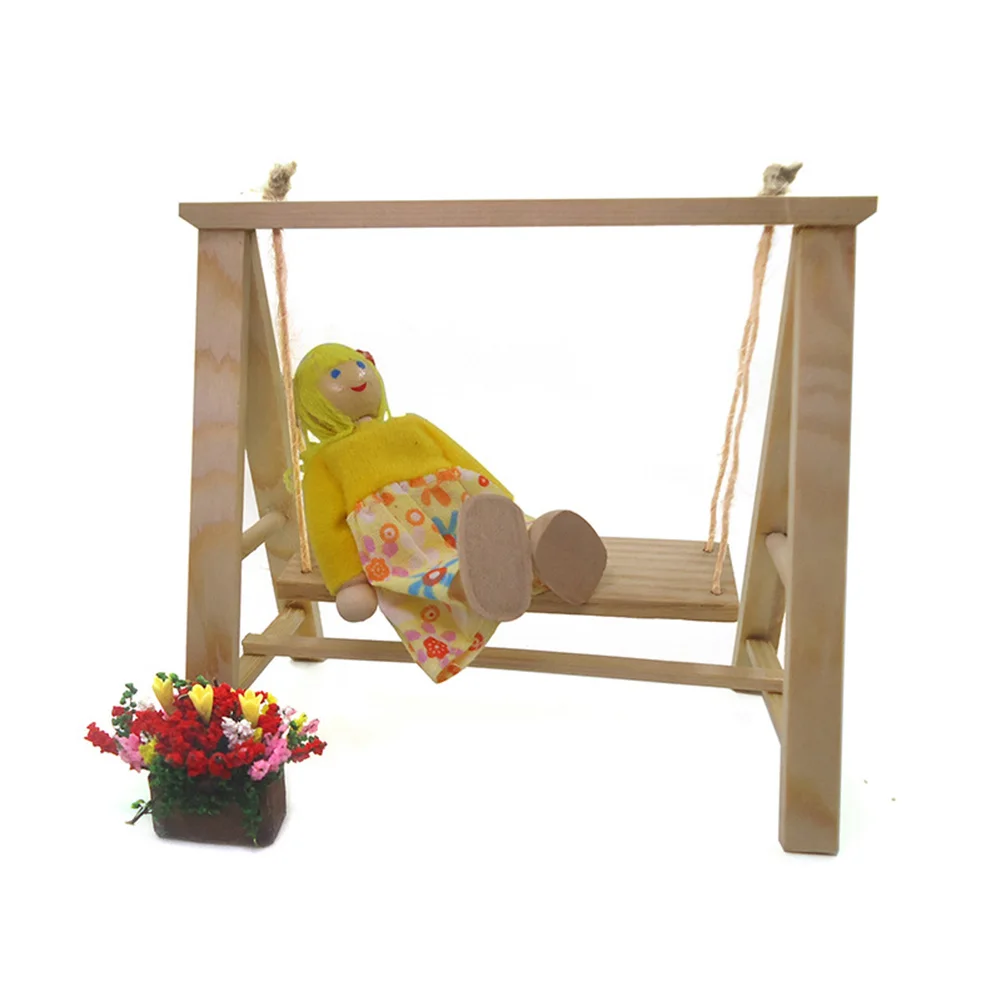 Миниатюрный пустой деревянный качели модель стула 1/12 Кукольный Дом Декорация игровой площадки