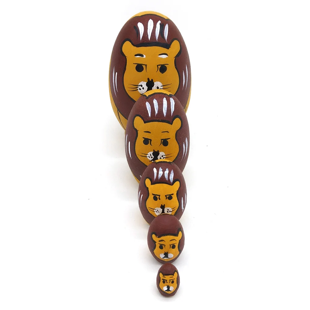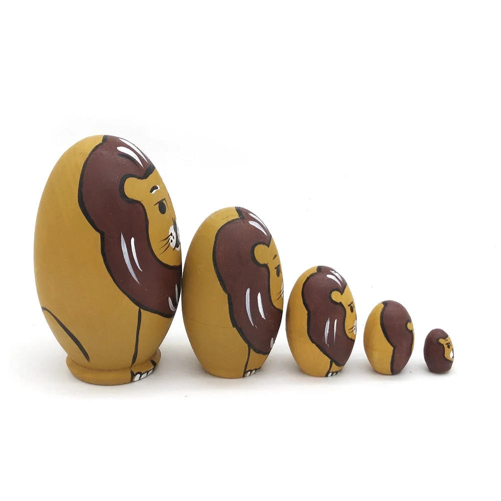 5Pcs/Set Egg Shape Cute Lion Nesting Dolls Wooden Figurine Matryoshka Kids Toy