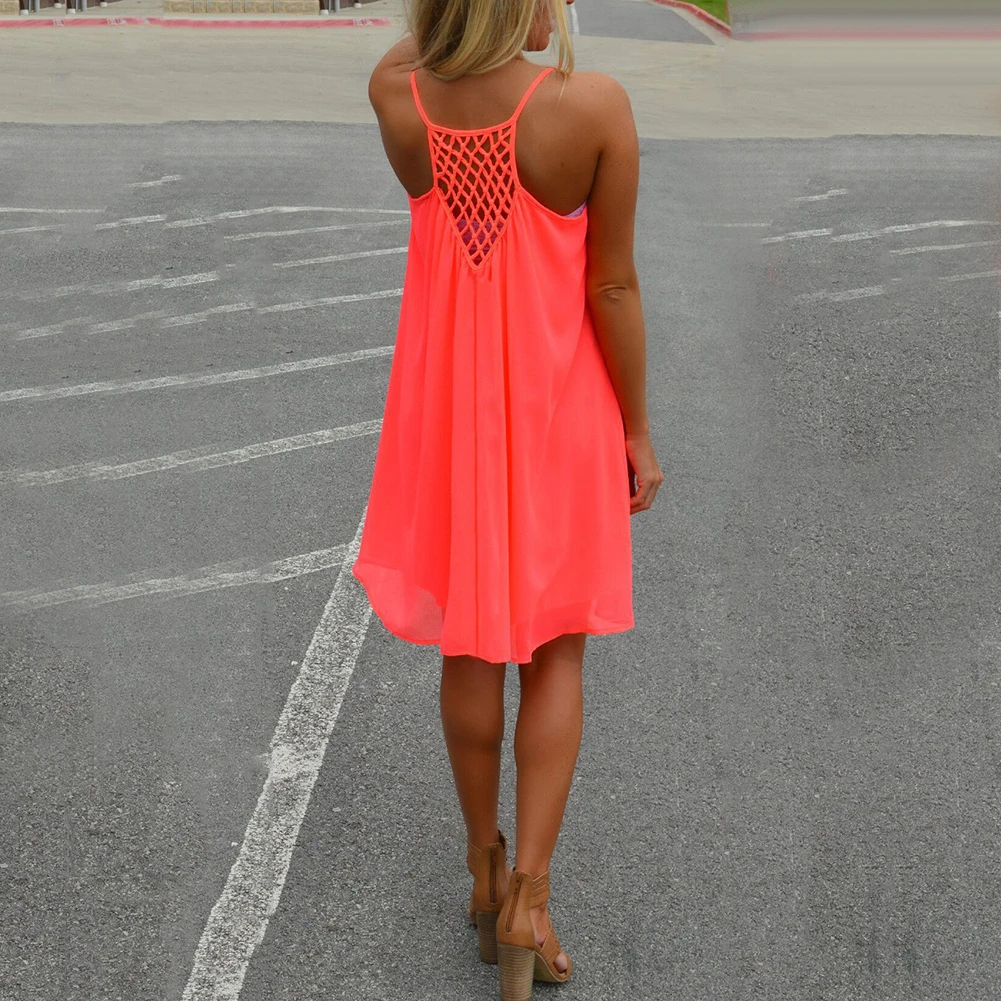 Платье на бретельках с сеткой сзади, что делает вас привлекательным и сексуальным.